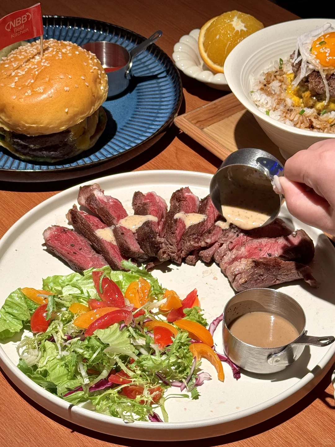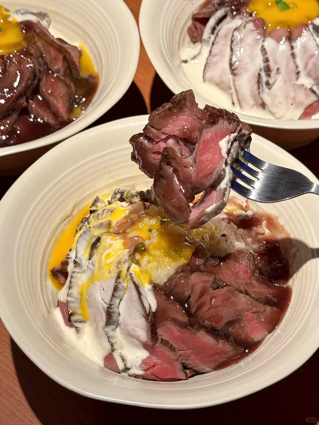 放到星光大道!很适合i人一人食的宝藏小食堂!强推他家雪顶熔岩牛排饭!温泉蛋和酸奶酱拌匀裹着牛排! 还有和牛汉堡和梅酱冰草堡塔都好好吃!