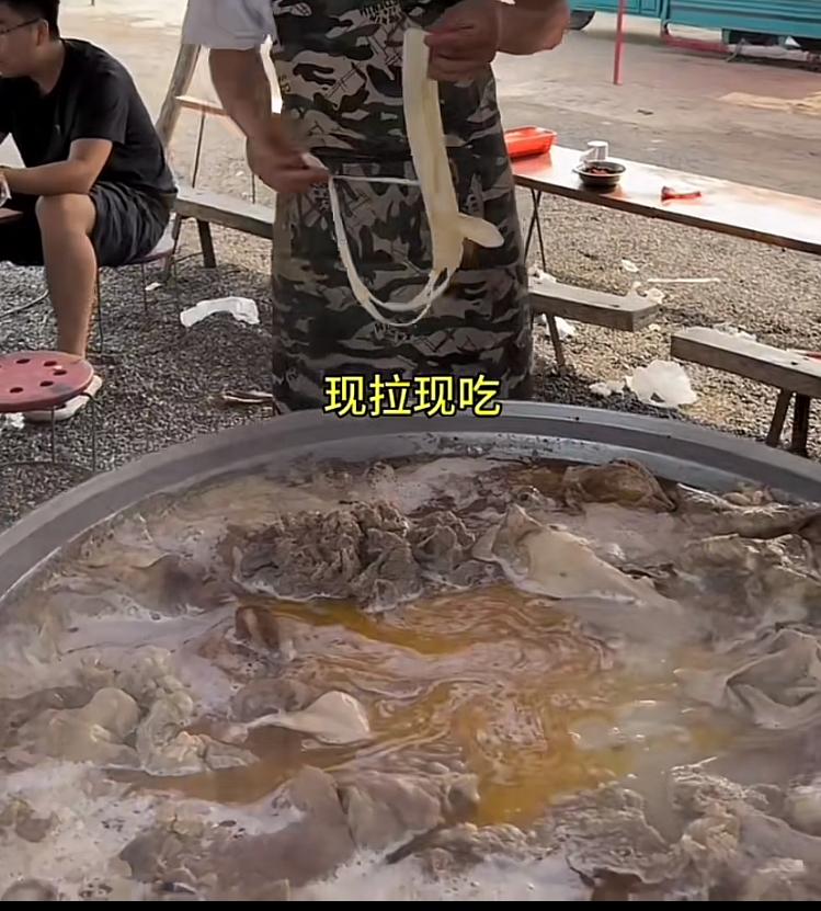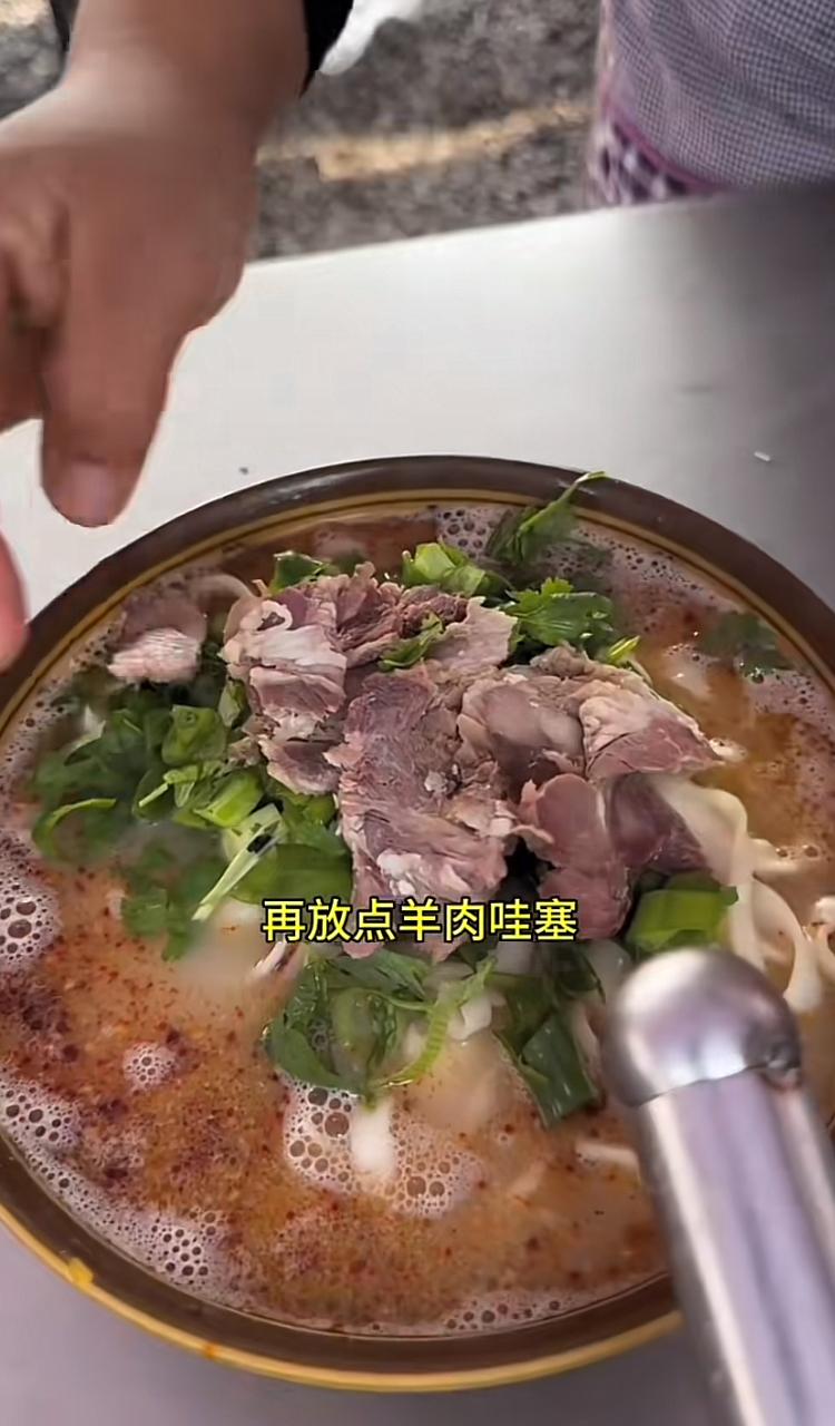 这是最为正宗的烩面,也是滋补烩面最初的样子,堪称烩面中的极品。 先炖上一大锅羊肉,待有顾客点烩面时,直接将面下入炖羊肉的锅中。面煮熟后,从锅中的羊肉间捞出,如此煮出的面,入味且嫩滑,口感无与伦比。 烩面汤采用的是羊肉汤,营养丰富。面上再铺上一层鲜切羊肉,总价只需八元,真正做到了物美价廉,尽显当地淳朴民风。 我们在全国各地吃到的烩面,已被改得面目全非,全然没了烩面原本的模样。
