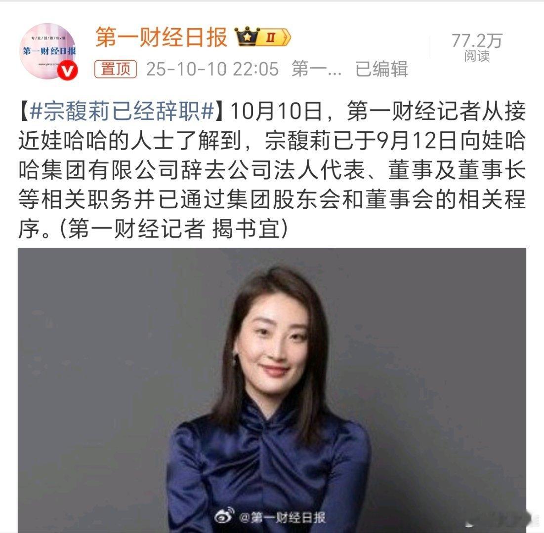 宗馥莉已经辞职与其天天窝里斗,还不如做甩手掌柜!
