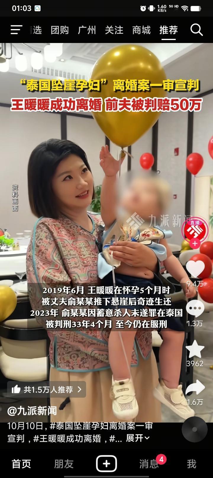 "泰国坠崖孕妇"离婚案判了!这3个细节值得所有女性警惕 南京法院刚刚判她和杀妻恶魔彻底离婚,还让那个禽兽赔偿50万! 这起轰动全网的跨国离婚案,不仅是对施暴者的惩罚,更给所有女性提了三个醒: 案件时间 2019年6月:孕五月被推下34米悬崖 2023年8月:泰国法院判33年零4个月 2025年10月:国内法院判离婚+赔偿50 跨国离婚也能线上开庭 这次法院直接视频连线在泰国服刑的渣男,用视频完成整个庭审! 根据咱们国家的法律,只要一方在国内,就算对方在国外也能办离婚。 这操作简直是给所有跨国婚姻的姐妹开了先河! 家暴赔偿有了新标准 50万的赔偿创下同类案件新高!法官不仅算了医疗费、误工费这些看得见的账,还特别考虑了被推下悬崖时的恐惧、这四年多的心理创伤,甚至算上了未来的治疗费。 这说明法律开始重视精神伤害了! 跨国犯罪也能双重追责 泰国判完刑,国内又接着判离婚赔偿,这相当于给渣男双重打击! 以后那些想躲到国外,泰国孕妇崖案 逃避责任的人渣可要小心了,咱们国家法律一样能追到你! 给姐妹们的提醒 遇到家暴别心软!立刻报警+验伤+留证据 发现对方有赌博、出轨等重大过错,离婚时可以要求赔偿 跨国婚姻要留个心眼,提前了解两国法律差异 看到这样的判决,真的忍不住想给法官点赞!这不仅是王暖暖的胜利,更是所有女性的胜利。 愿所有遭遇家暴的姐妹,都能勇敢站出来,法律会是你们最坚实的后盾!泰国坠崖孕妇