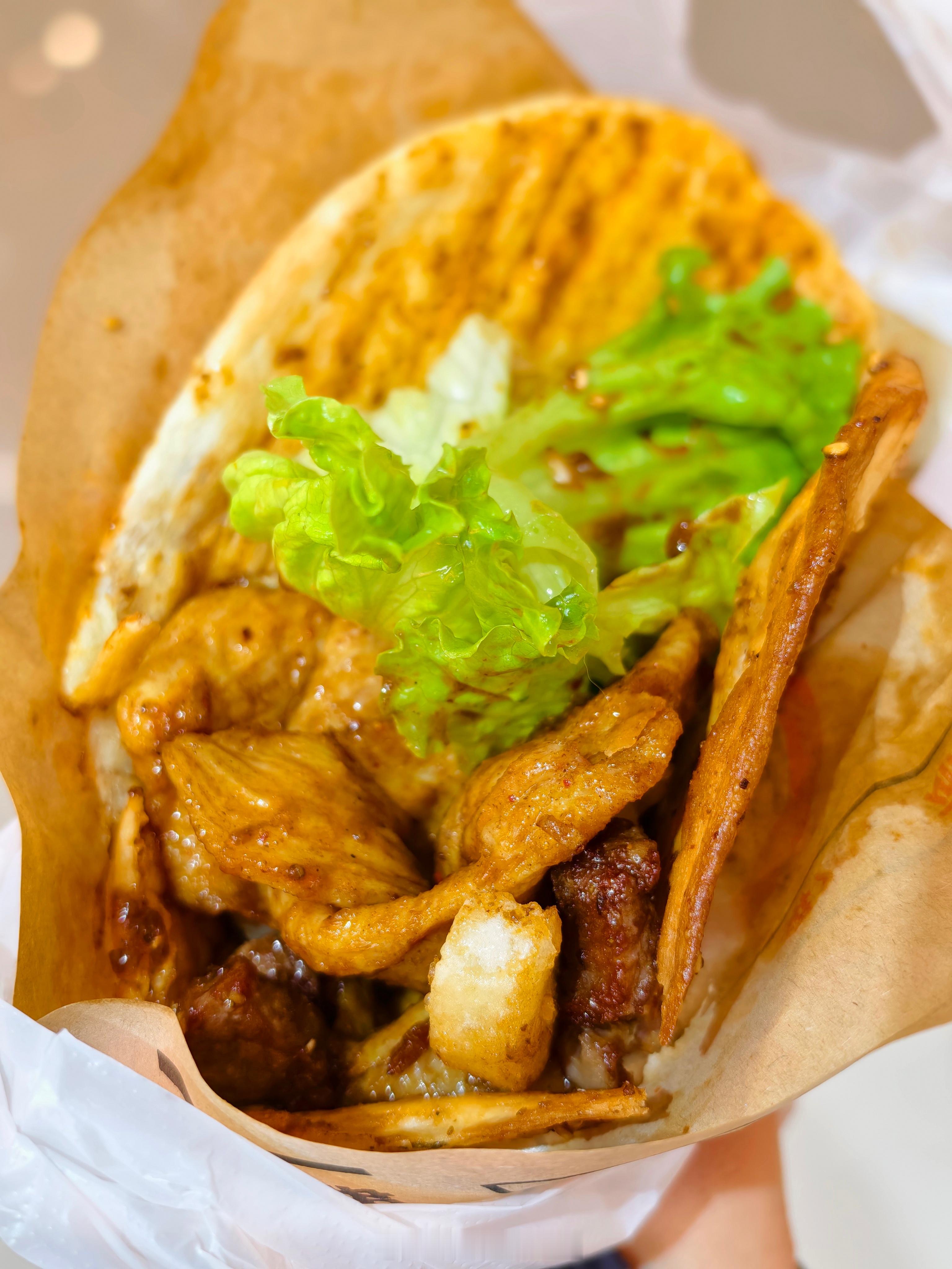 晚安朋友们,今晚我又吃了烧饼夹里脊夹羊肉串,就问你这个料不足?有点东西