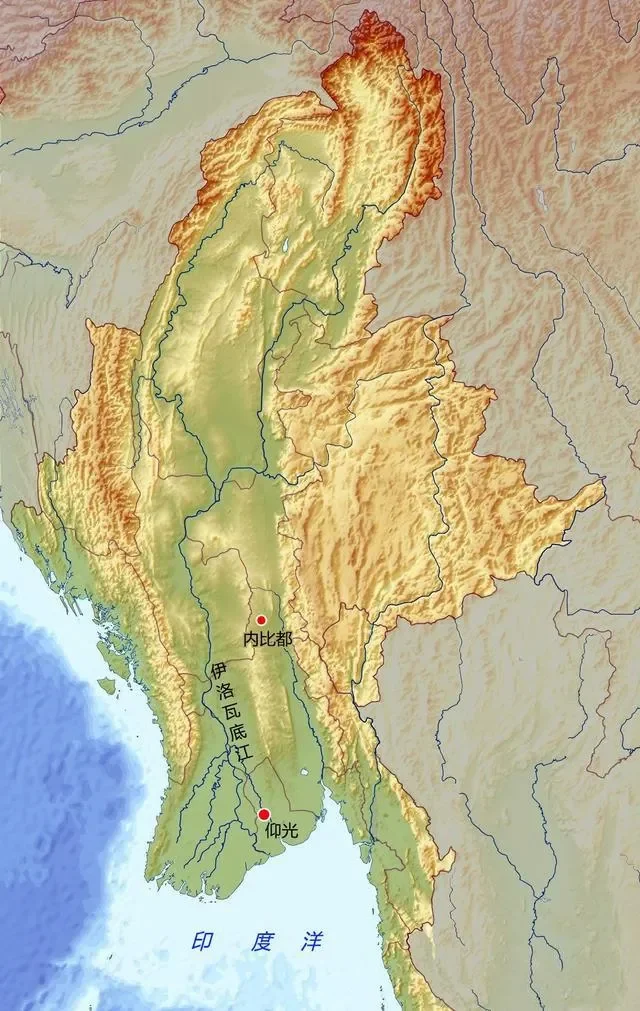 💧有水源:伊洛瓦底江、钦敦江、萨尔温江和锡唐河水域