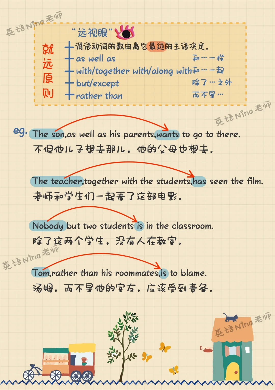主谓一致—讲起来容易,做题易混。先搞透就近原则,接下来还有语法一致原则,意义一致原则。英语笔记 英语语法 主谓一致 爱好:整理知识点📖,做孩子们爱的手账笔记🌵! 分享系统语法知识,从初级到中级再到高级,脱传统语法的枯燥,编写了大量的口诀,由易到难,通俗易懂,赶紧收藏学起来吧。