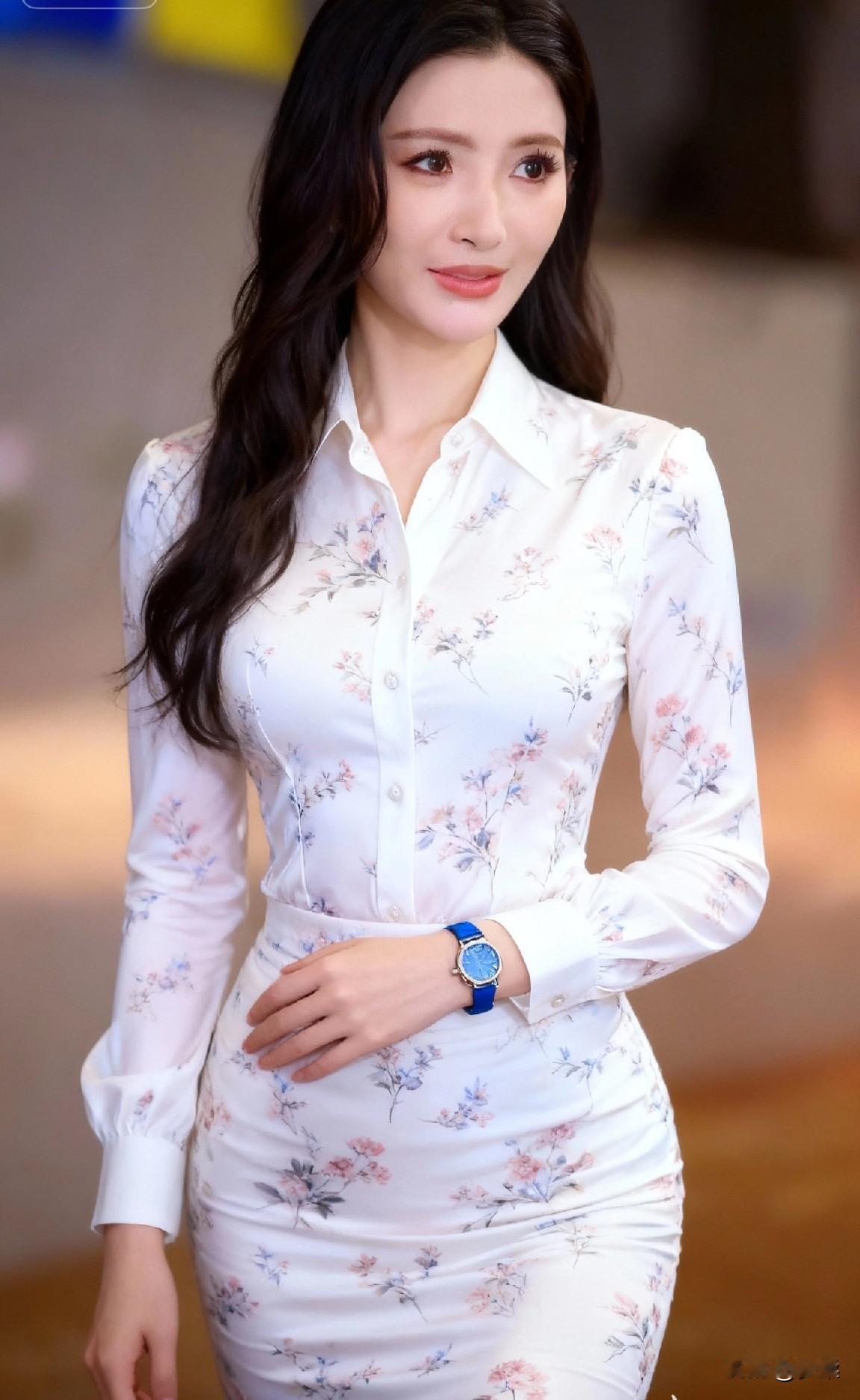 优雅白衬衫搭配花卉裙,气质女神范儿十足!🌸👗白色印花衬衫裙