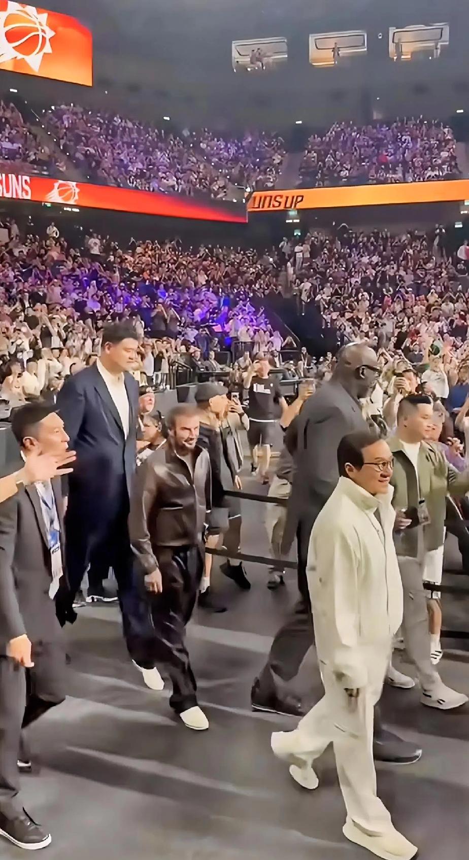 是欢呼姚明和奥尼尔吧,这个场合谁看得到贝克汉姆和成龙啊?都挡住了[捂脸哭]