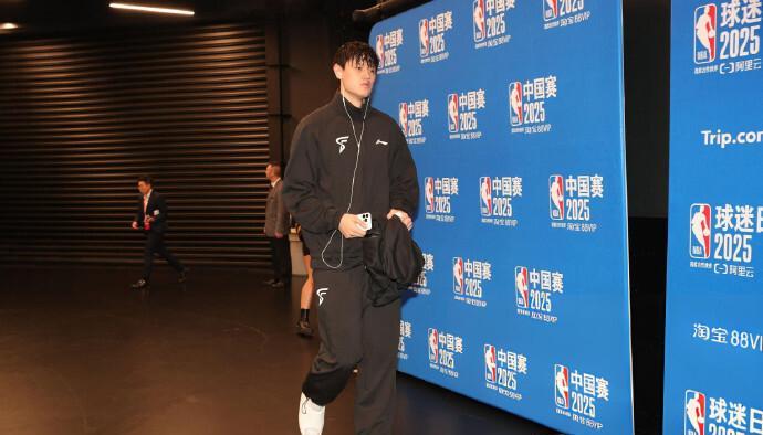 NBA中国季前赛第二节打了九分钟,曾凡博终于被换上场,现在一片欢呼。中国球迷等的