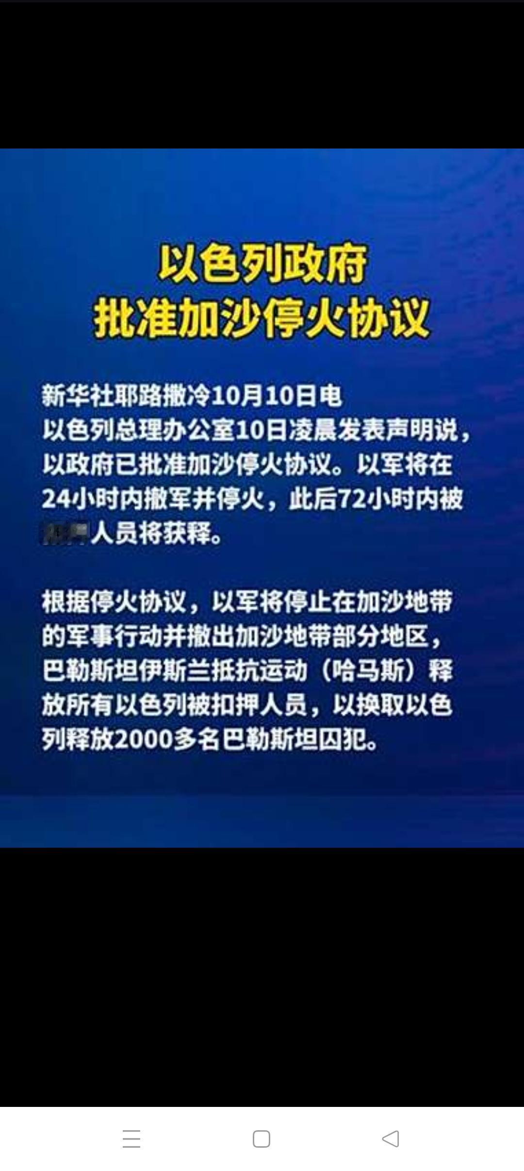 10月10日,两处冲突地区停火! 10月10日凌晨以色列总理办公室发表声明以色列政府已批准加沙停火协议,标志着该协议已正式生效,加沙地区停火得以实现。同日,印度和巴基斯坦双方同时确认印巴立即停火。上述两处冲突地区的战火得以平息。就不知道俄乌冲突何时结束?