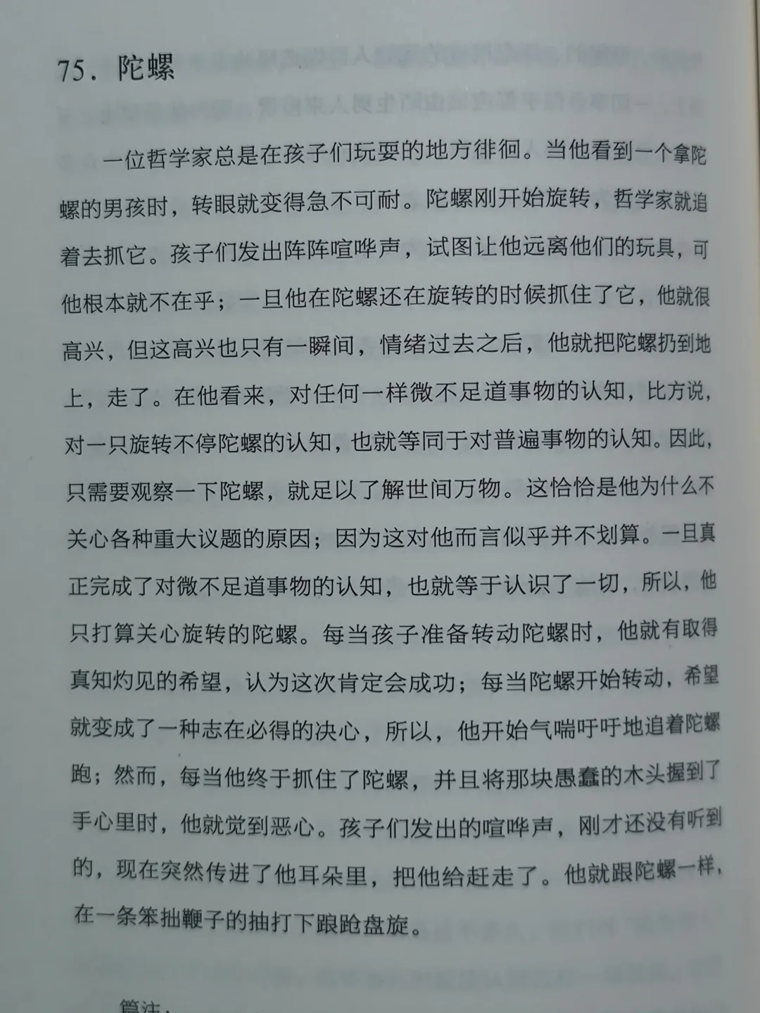 在很多小说家那里,感同身受需要细节铺垫、情节引导。比如苔丝、艾玛、奥雷良诺,但在卡夫卡这里,感同身受是瞬间的,不说《审判》《城堡》,也不说《变形记》,哪怕是《陀螺》这种四五百字的小文章,我们也能认出,自己就是那只被拙劣的鞭子抽打的陀螺。