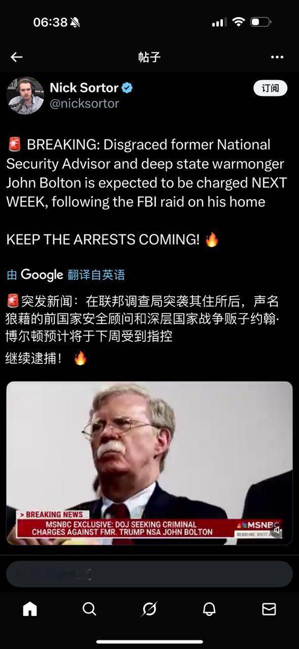 在联邦调查局突袭其住所后,声名狼藉的前国家安全顾问和深层国家战争贩子约翰.博尔顿预计将于下周受到指控。