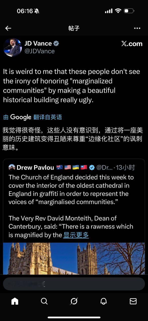 我觉得很奇怪,这些人没有意识到,通过将一座美丽的历史建筑变得丑陋来尊重"边缘化社区"的讽刺意味。