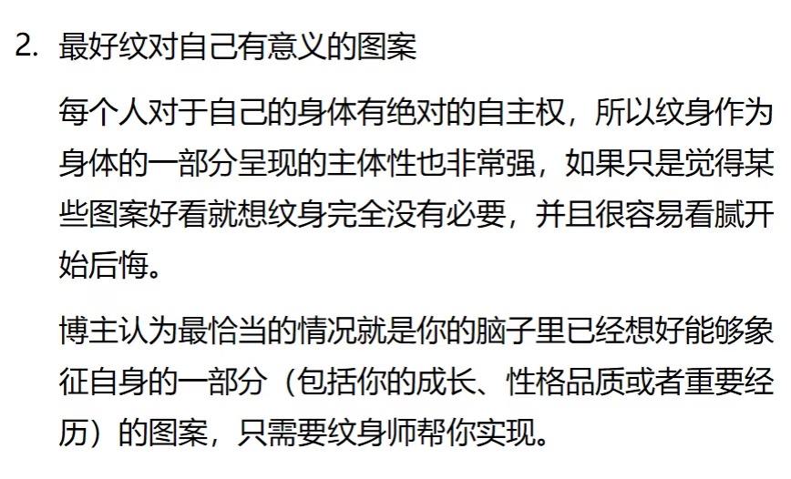 1.未成年不要纹身/没钱不要纹身/还没有职业规划不要纹身;