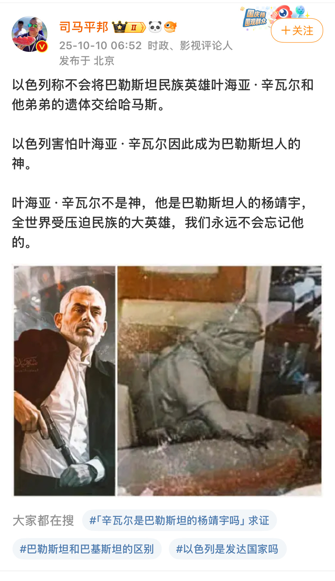 “巴勒斯坦人的杨靖宇”这结论是怎么得出来的…?