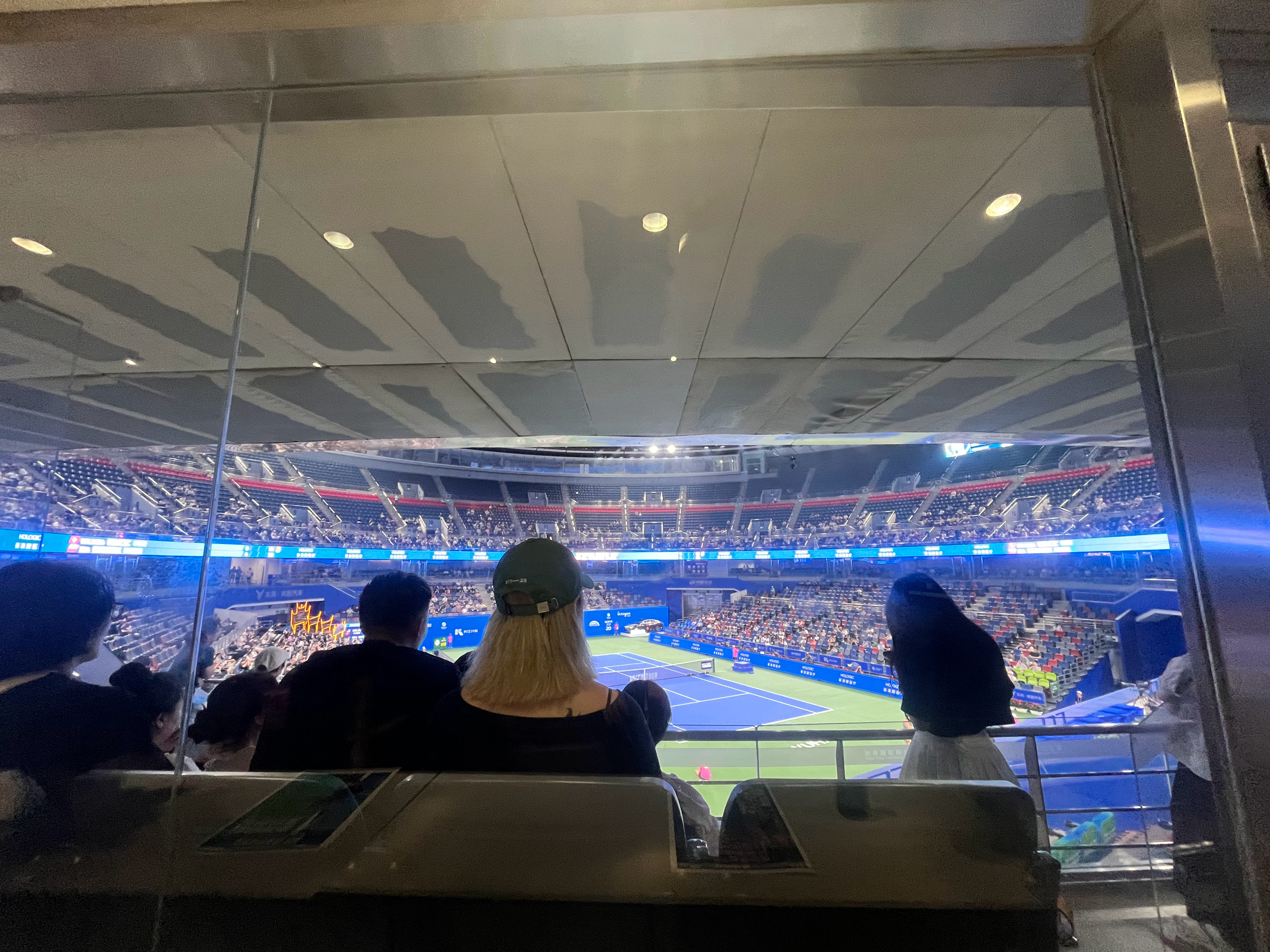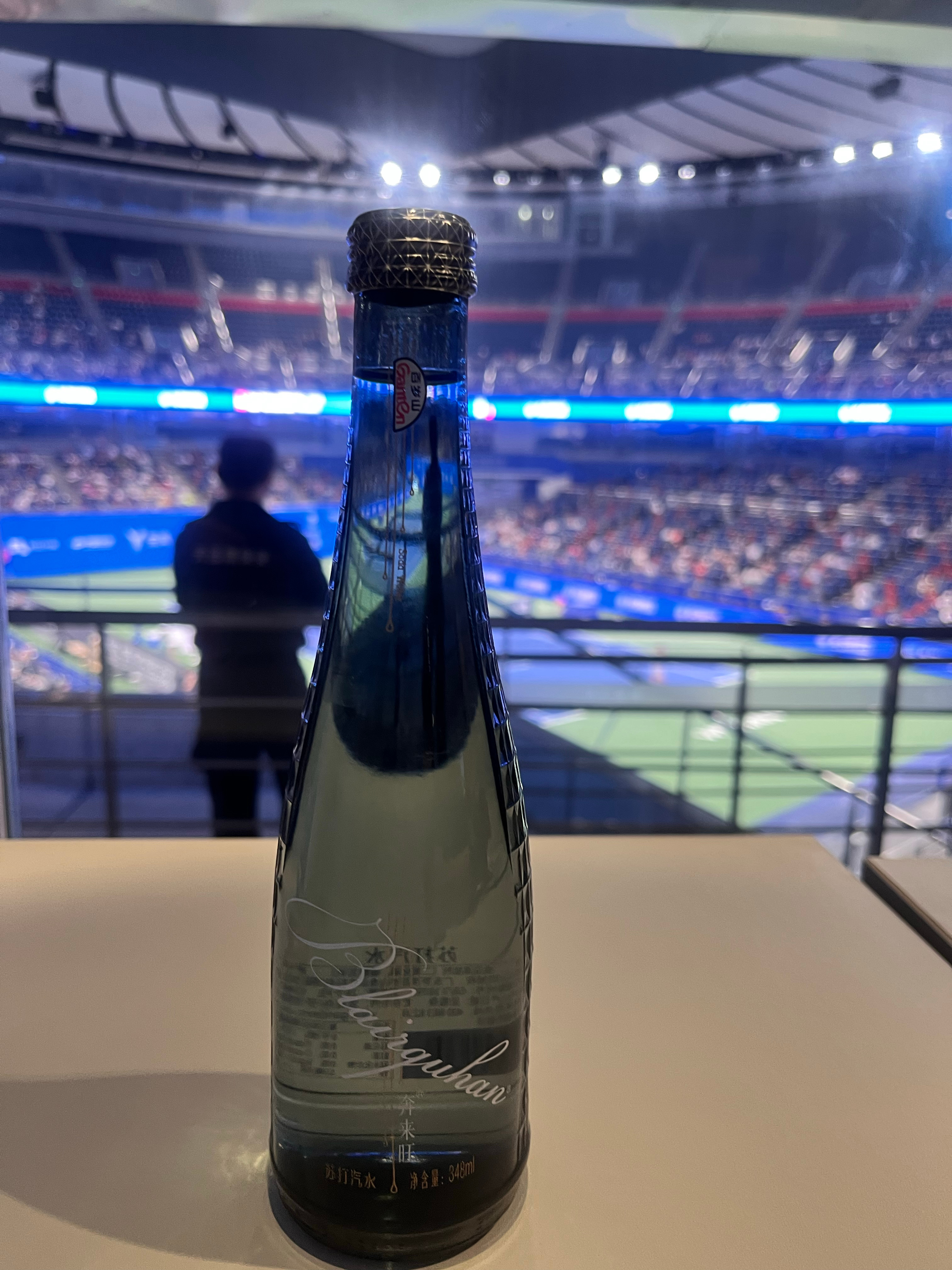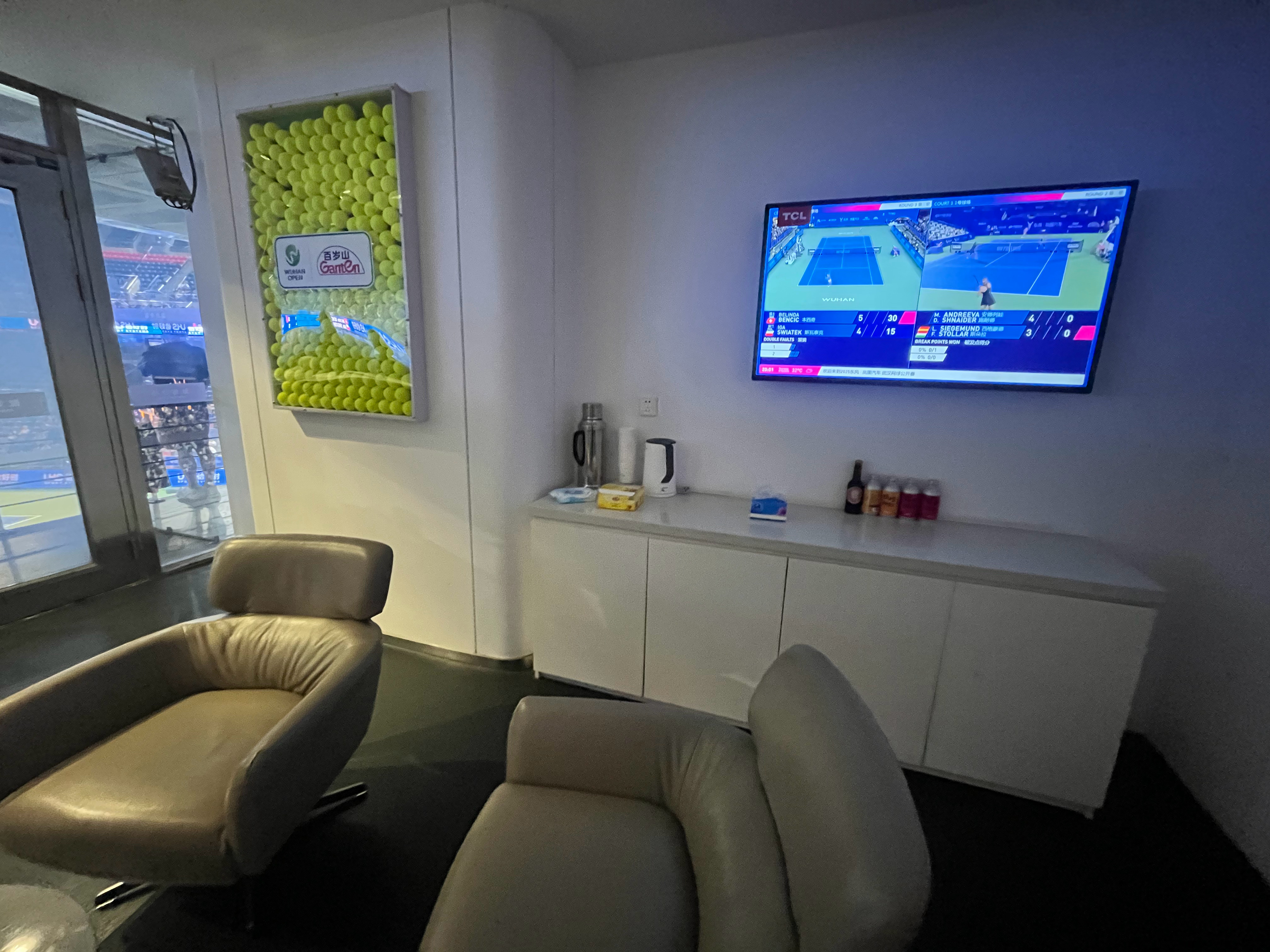 发一个武网包房的看球视角,非常舒服!感谢邀请,这个苏打水很不错!