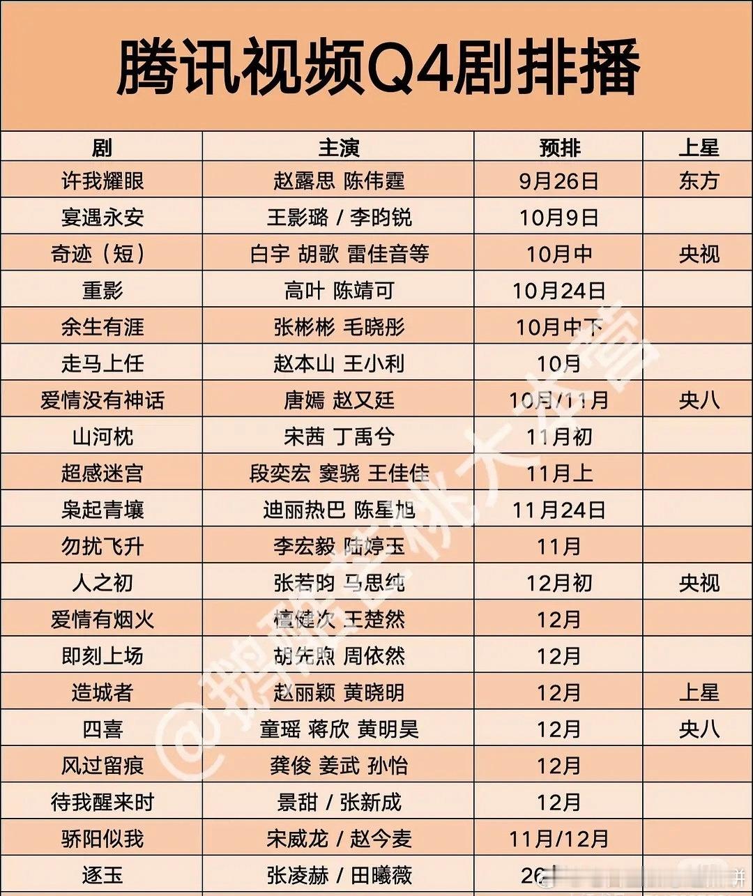 排播的热闹,一些高关注度、流量🥜🌸的剧