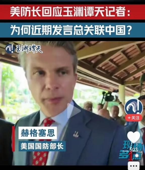 美国防长来到亚洲句句离不开中国,记者提问他为什么句句离不开中国,他顾左右而言,他
