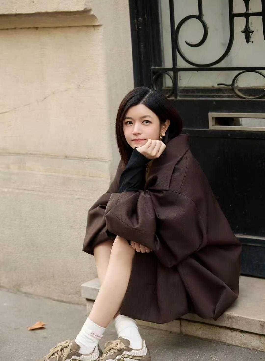 坐地上了,还坐出标准来了。 巴黎的地板比地铁座椅还干净,Chanel的裙子裹着0