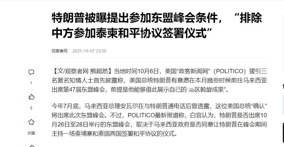 10月9号,特朗普本月底的亚洲访问行程,已经基本公布了。很有意思的一个关注点是,特朗普决定出席,在马来西亚召开的东盟峰会;但却决定不出席韩国的APEC峰会,只会在韩国与中、韩双边会见之后,就立马离开。那么对于这两个亚洲地区,非常重要的多边机制,特朗普的态度为什么会有如此的天壤之别呢? 先说为啥非要去东盟峰会,马来西亚这地方选得就有门道,正好卡在南海边上,是东南亚的“十字路口”。特朗普心里门儿清,当年他刚上台时脑子一热退了TPP,把东南亚国家晾在那儿没人管,结果中国趁机往上凑,又是签自贸协定又是搞基建合作,现在东盟早成了中国最大的贸易伙伴,南海这边的合作也越走越近。他现在急着去东盟,说白了就是来“救火”的,想把失去的场子找回来,拉着东南亚国家一起给中国在南海使绊子。 他去了肯定得画大饼,比如承诺给点关税优惠,说要增加对东盟的投资,可这些话听听就得了——之前美国给东南亚的承诺,十句里有八句没下文。就像2023年美国说要帮菲律宾建基础设施,到现在没见着几个项目落地,反倒是中国帮老挝修的铁路早通车运营了。 东盟那帮主儿精着呢,谁给真金白银跟谁走,特朗普要是只揣着空话去,怕是连个像样的联合声明都签不下来。更别说他心里打的小九九,无非是想让东盟国家在南海问题上跟着美国起哄,比如多搞几次所谓的“自由航行”,可东盟国家才不想被当枪使,真把中国得罪了,自家的农产品、矿产卖给谁去? 再看为啥放着APEC峰会不去,这事儿更透着他的任性。APEC讲究的是协商一致、互利共赢,要谈的都是数字贸易、供应链合作、气候变化这些“慢活儿”,可特朗普是个只看眼前利益的主儿,恨不得今天投钱明天就见回报,哪有耐心跟一群国家慢慢磨?就说气候变化,他当年上台第一件事就是退出巴黎协定,现在APEC要谈低碳转型,他去了除了泼冷水还能干嘛? 更关键的是,中国在APEC里的话语权越来越重了。这些年中国跟APEC成员国的贸易额占了自己外贸总额的六成多,数字经济合作、跨境电商这些领域,中国都是领头的。特朗普要是去了APEC峰会,万一中国提出的倡议得到大多数国家支持,他岂不是成了陪衬? 以他那好面子的性子,肯定受不了这委屈,干脆找个借口不去,眼不见心不烦。可他不想想,APEC是美国当年牵头搞起来的重要平台,长期缺席只会让美国的影响力越来越弱,等他想再回来的时候,怕是连说话的份儿都没了。 至于韩国这一站,说穿了就是特朗普的“提款机”行程。他虽然不去APEC,但非要在韩国停一天,核心就两件事:一是逼韩国多掏驻韩美军的分摊费用,二是逼着韩国把制造业往美国转移。 2025年8月他跟韩国总统李在明谈的时候,就狮子大开口要韩国把驻韩美军基地的土地所有权交出来,当时韩国就没松口。这次他去,肯定还得拿这事儿施压,说不定会放话“要是不掏钱,就减少驻军”——可他忘了,驻韩美军是为了美国的战略利益,不是给韩国当保镖的,这么明着敲竹杠,韩国心里能舒服? 还有制造业的事儿,他之前就说要让韩国造船企业去美国建厂,用美国本地劳动力生产,美其名曰“加强供应链安全”,其实就是想把韩国的高端产业抢过去,帮美国解决就业问题。韩国造船业本来在全球就占着半壁江山,真要是把生产线迁到美国,成本得涨一大截,还得看美国工会的脸色,换谁都不愿意。可韩国又不敢完全得罪美国,毕竟还得靠美国的“安全保障”,只能在中间打太极——说不定会答应在美国建个小厂子应付一下,核心技术肯定不会搬过去。 其实特朗普这整趟行程,绕来绕去都没躲开中国这个“隐形指挥棒”。去东盟是怕中国在南海的影响力太大,不去APEC是怵中国在多边平台上的话语权,去韩国施压是怕韩国跟中国走得太近。可他的算计全是一厢情愿:东盟国家不会为了美国得罪最大的贸易伙伴,APEC少了美国,中国照样能推动合作,韩国更不会因为美国的压力就断了跟中国的经贸往来。毕竟韩国每年跟中国的贸易额超过3000亿美元,比跟美国、日本加起来还多,真把中国惹毛了,韩国的半导体、汽车产业都得遭殃。 说穿了,特朗普这趟亚洲行就是典型的“短视操作”,只盯着眼前的那点利益,根本没考虑长远的战略。他以为靠威胁、画饼就能让亚洲国家跟着美国走,却忘了现在的亚洲早就不是几十年前那个任人摆布的样子了。东盟要的是实在的发展好处,APEC需要的是真心的合作态度,韩国要的是平衡的外交关系,这些都不是特朗普那套“美国优先”的单边主义能满足的。 要是他到了东盟,发现没人愿意跟着他起哄;到了韩国,没拿到想要的好处;再看着APEC峰会上中国跟其他国家谈得热火朝天,不知道会不会后悔自己当初的决定。毕竟历史早就证明了,搞对抗、耍霸权没有出路,只有合作共赢才能走得远。 参考资料:观察者网