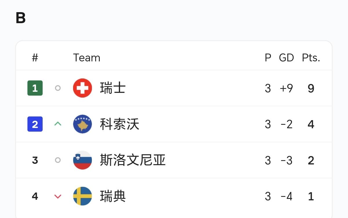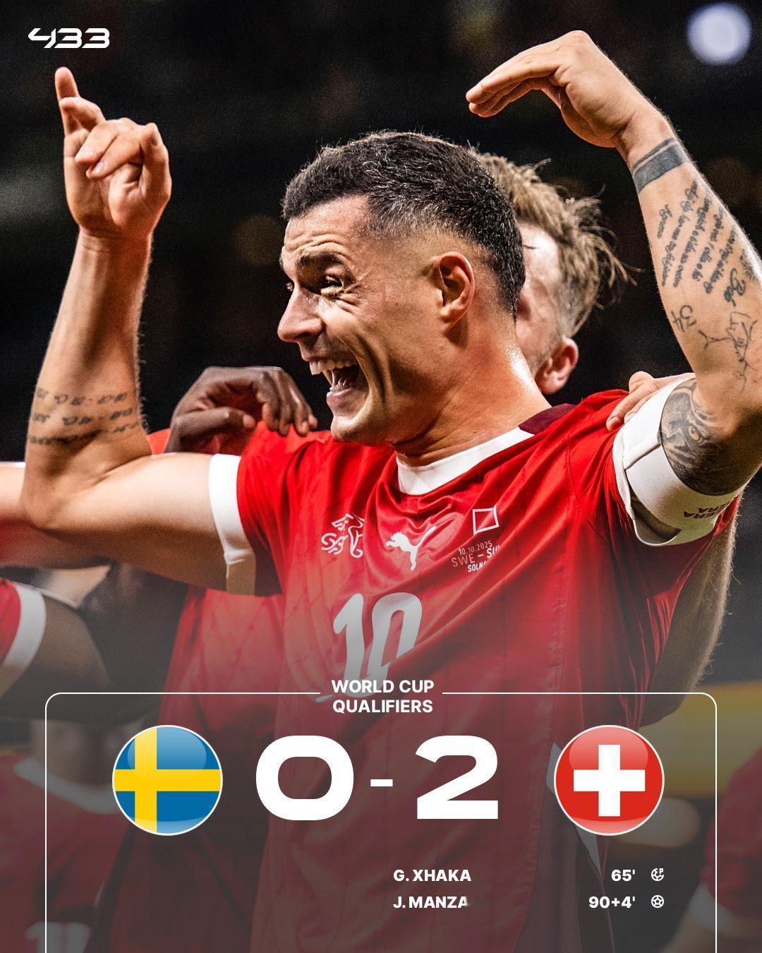 【瑞典危险了】世预赛欧洲区B组,伊萨克和哲凯赖什联袂首发,但瑞典仍在主场0-2不敌瑞士!三轮过后,瑞士三战全胜积9分,瑞典一平二负小组垫底仅积1分,基本无缘直通资格。 由于这个小组只有四支球队,在只剩三轮的情况下,瑞典必须在接下来的三轮比赛中触底反弹,力争小组第二以获得参加附加赛的资格。