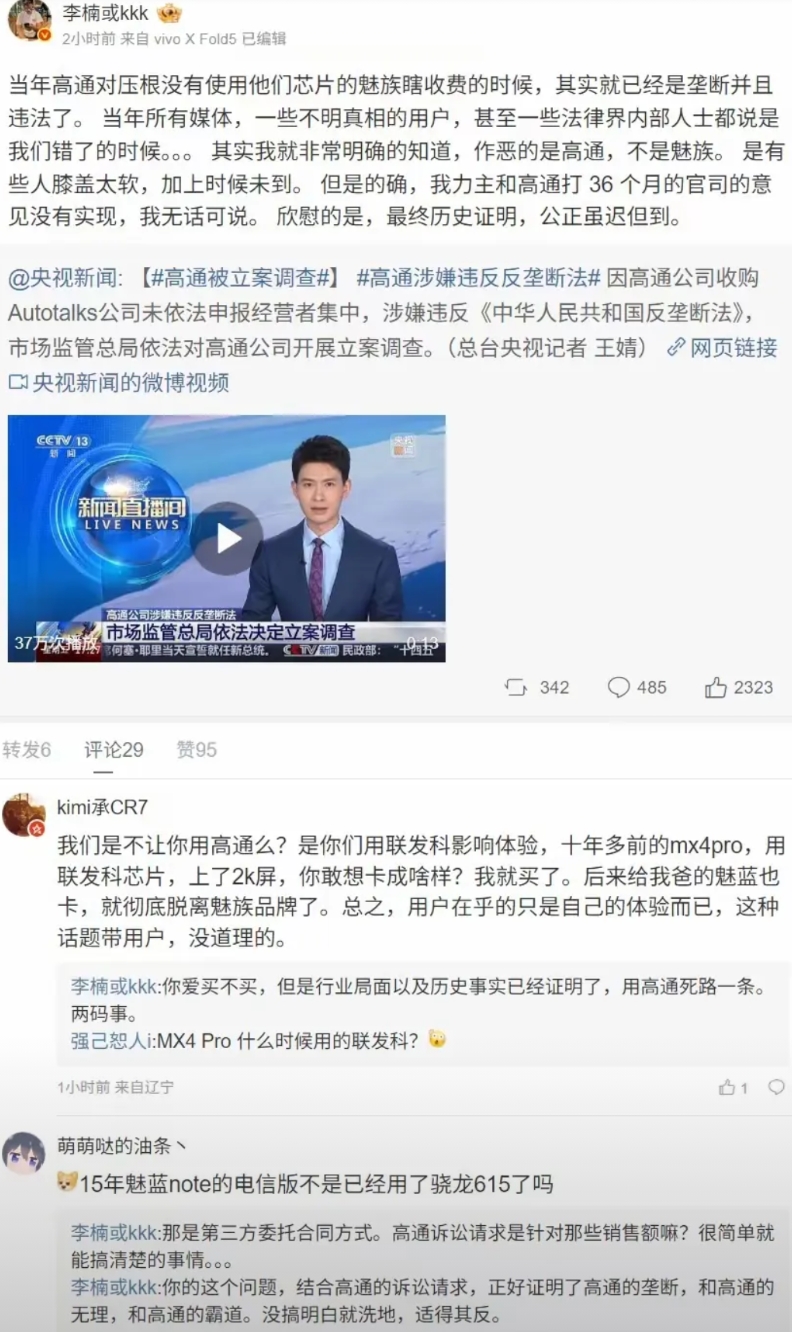 是该好好整治一下高通了 李楠说当初高通对没有用过它们芯片的魅族瞎收费!这种的芯片巨头的确可恶,明摆着店大欺客。