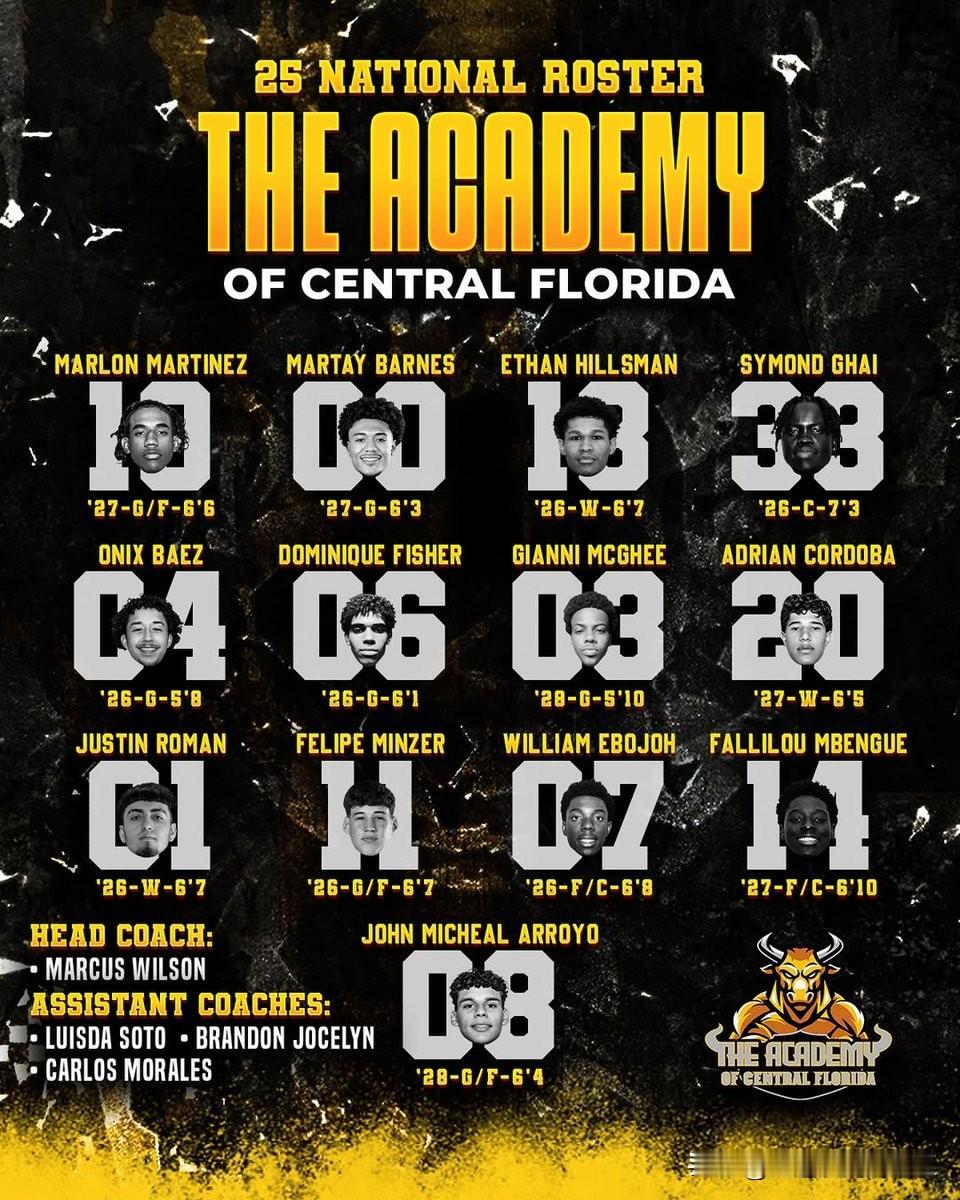 阿根廷侧翼Felipe Minzer离开西班牙前往美国发展,高中就读于佛罗里达州Academy of Central Florida,队友还有西班牙控卫Dominique Fisher,身高6-6=198,出生于2007年9月,2025年U19男篮世界杯场均得到9.8分4.2篮板3.8助攻3.2抢断,2024年U17赛事场均得到17.4分7.1篮板4.6助攻。