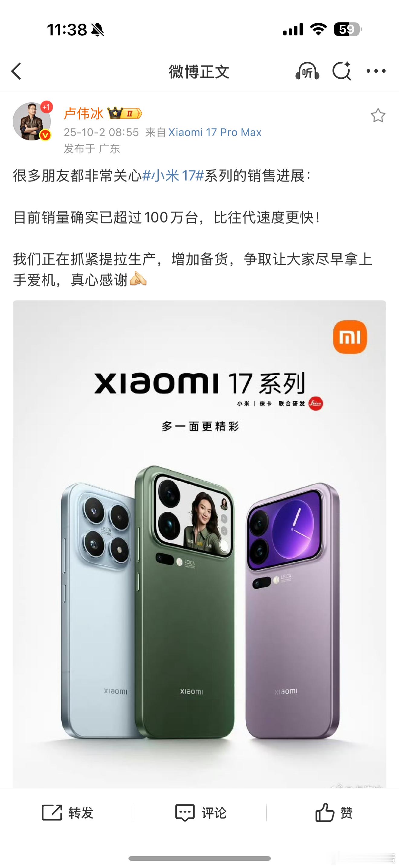 小米领先苹果登顶黄金周销量第一小米17系列交出了一份足够震撼的成绩单。连续两周销量超越苹果,稳占榜首,面对最强对手丝毫不落下风,这才是真全面对标,爽文都不敢写的逆袭剧本,小米17系列实现了。