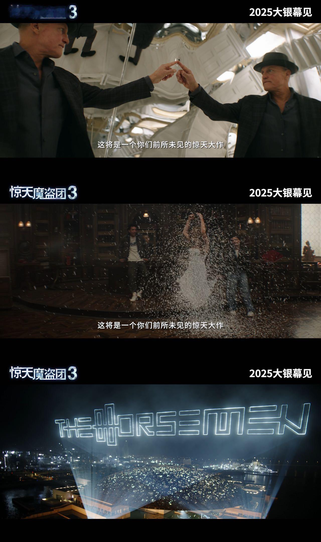 惊天魔盗团3确认引进盼了九年的《惊天魔盗团3》确认引进!当年卷西控雨术等名场面超震撼,如今初代四骑士回归,又有新成员,这波大银幕狂欢,必须安排上~