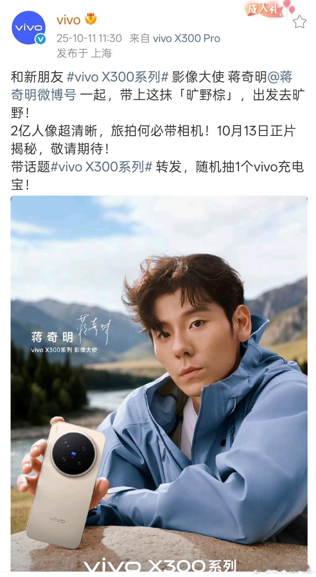 蒋奇明代言vivo X300去了,看来跟一加的合作早就到期了