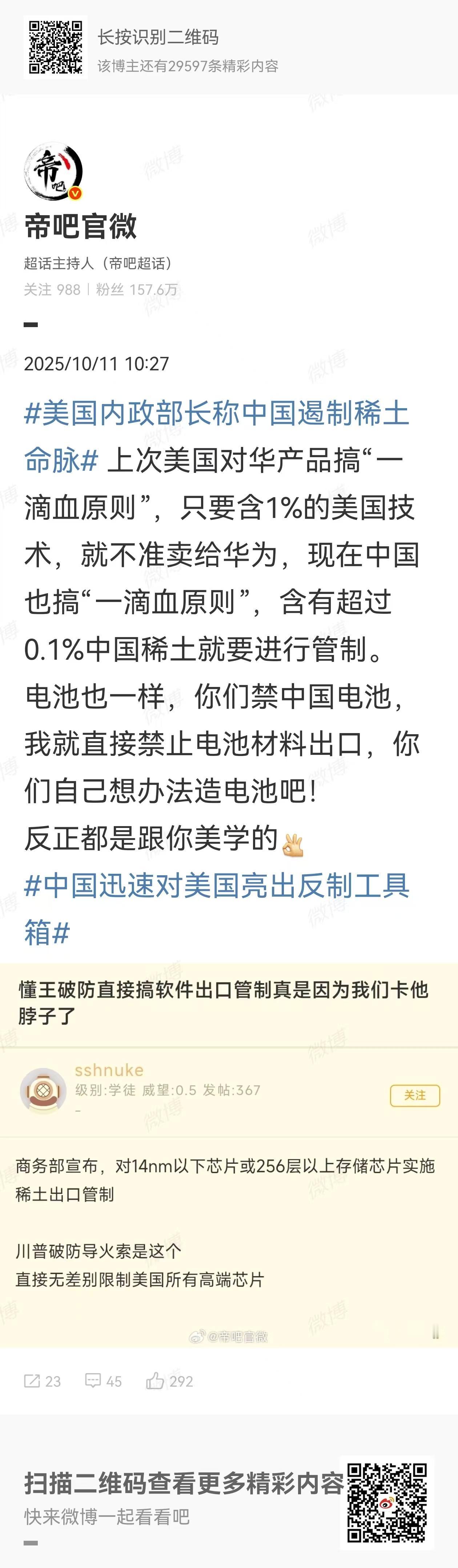 中国这一招真是绝了!用老美的手段对付老美,他们不是卡芯片吗?咱们就卡稀土,他们不是长臂管辖吗?咱们也有样学样。更绝的是,芯片生产也是需要稀土的!中国宣布对高端芯片稀土采取出口管制,这样一来,老美的芯片牌直接成了废牌,难怪川普突然发飙了,惊不惊喜?意不意外?