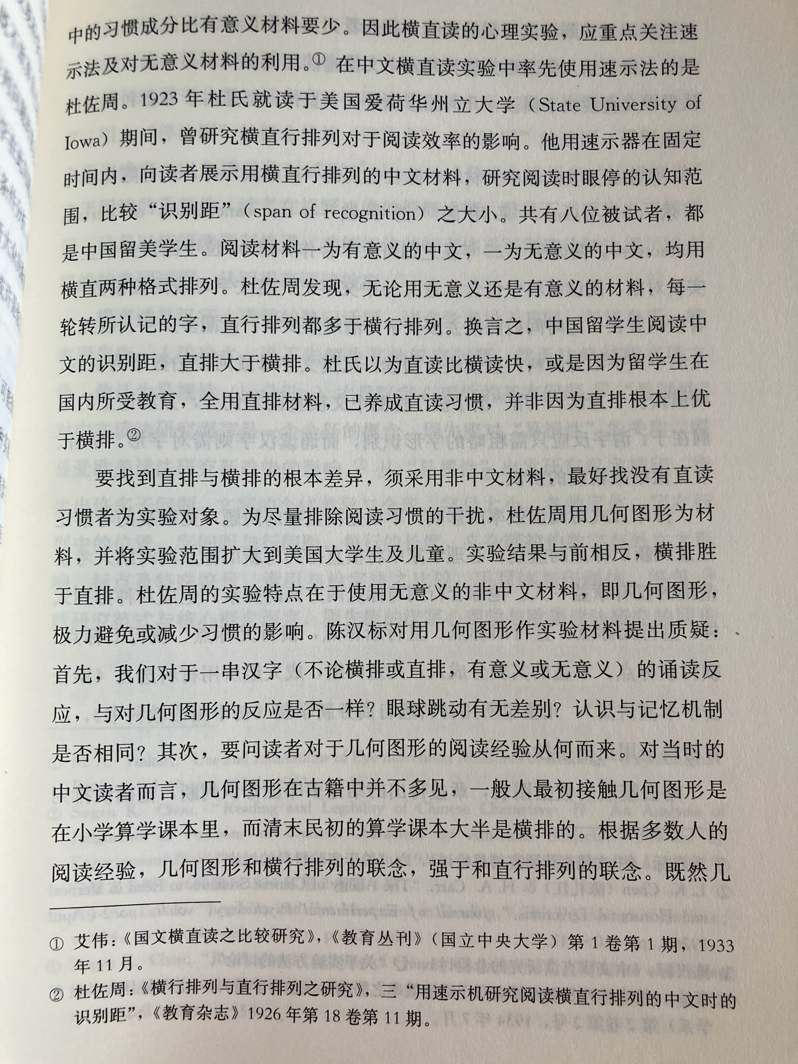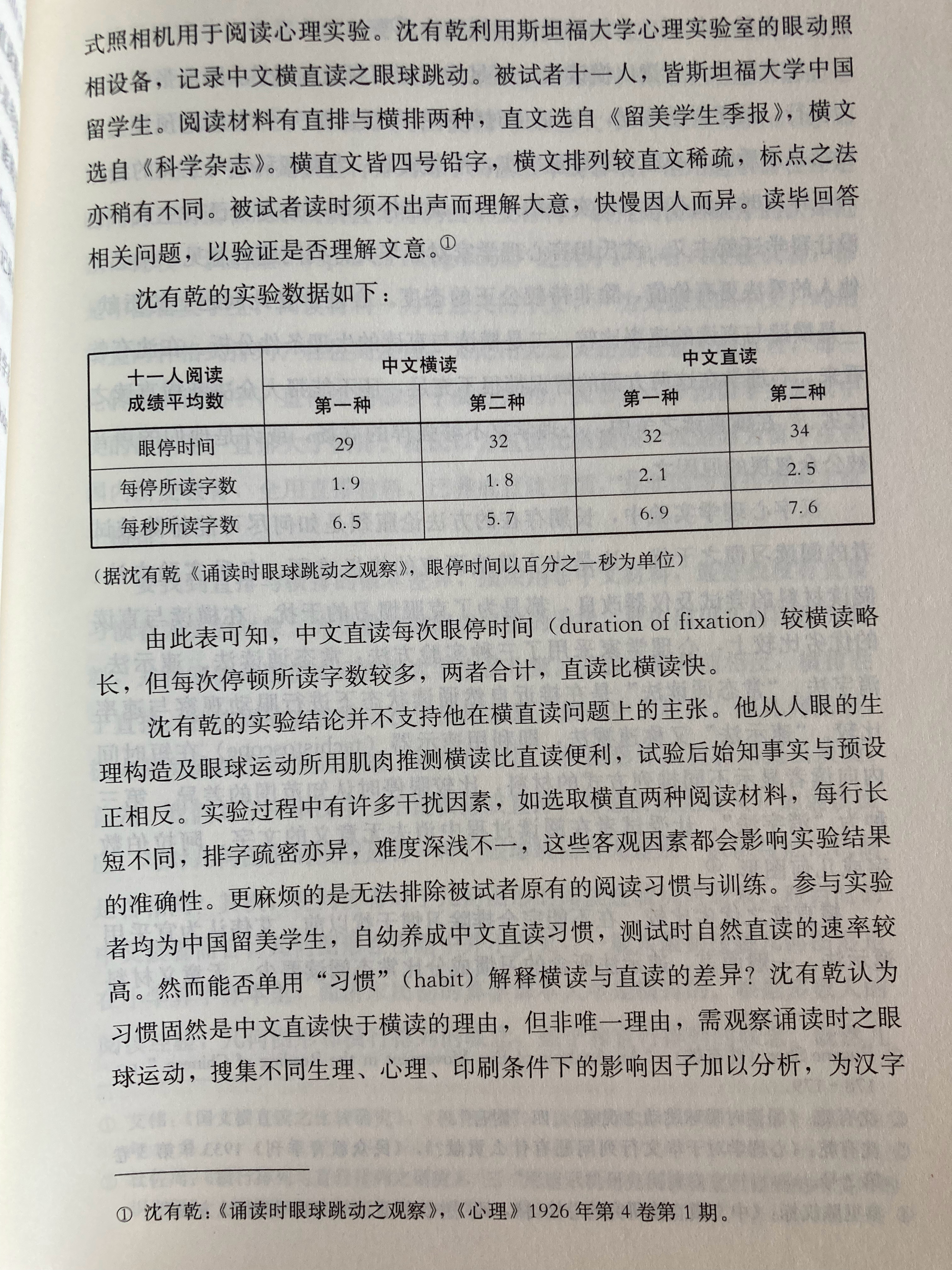 埴轮书话[超话] 早在20世纪20年代,围绕汉字存废与改革的讨论,已有几位学者使用仪器实验手段,测试汉字竖排与横排何者阅读效率更高。其中周先庚借助格式塔心理学对汉字特殊性的阐释独具卓识(袁一丹《另起的新文化运动》)