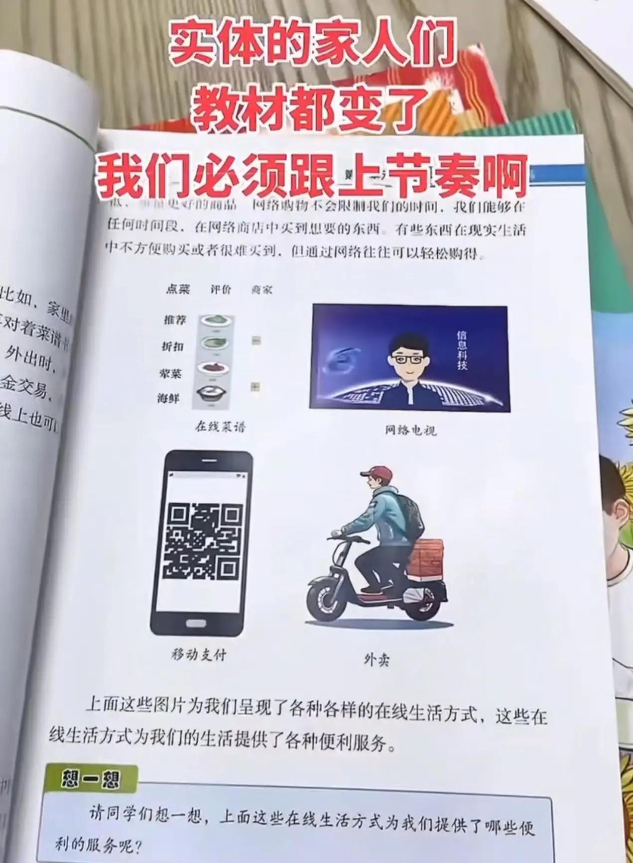 “有家长看不下去了!”三年级《信息科技》第一课教点外卖?刷到这则吐槽时,多少人心里咯噔一下——“价值观还没成型就教消费,这课教歪了吧?”但翻完浙教版、人教版的教材内容才发现,事情可能和大家想的不一样。 先别急着骂“主编没脑子”。教材里的“点外卖”从不是教孩子“花钱下单”,而是藏在“认识在线社会”的主题里:先让孩子对比“线下吃饭和点外卖”的区别,再引出浏览器、搜索栏的用法,最后补上关键一问“别人发的链接能随便打开吗?”。说白了,点外卖只是个“引子”,就像用“集体生日买礼物”讲网购一样,不过是把抽象的“在线应用”装进孩子熟悉的生活场景里 。 家长怕的“鼓励消费”,其实教材早埋了“刹车装置”。人教版教材专门设了“网络支付要谨慎”章节,明确要求孩子在家长监护下操作,还要学会“比较价格、看评价”,甚至讨论“哪些消费是必要的”。有老师晒出课堂记录:讲完点外卖流程后,会特意让孩子分组设计“家庭应急点餐方案”,要求选“性价比高、距离近的家常菜”,本质是在练信息筛选和理性决策能力。 更戳人的是,这届孩子早就不是“白纸”。他们见过父母手机上的外卖软件,听过长辈聊“在线买菜”,与其让他们偷偷摸索,不如借课程把“安全网”织起来:教他们识别虚假商家,提醒保护收货地址隐私,甚至区分“即时需求”和“冲动消费”——这些恰恰是数字化时代的“生存技能” 。 那位吐槽“不如教送外卖”的家长,或许没看到另一位妈妈的分享:孩子学完课后,主动帮加班的爸爸点外卖,还特意备注“少辣、多放餐具”,连商家优惠都算得明明白白。 说到底,家长焦虑的从不是“点外卖”这个场景,而是怕教育跟不上时代的脚步。你觉得三年级该用生活场景教科技课吗?这种“接地气”的教学方式,是贴心还是踩雷?评论区聊聊~科技素养的培养 校园科技教育 新课标信息技术