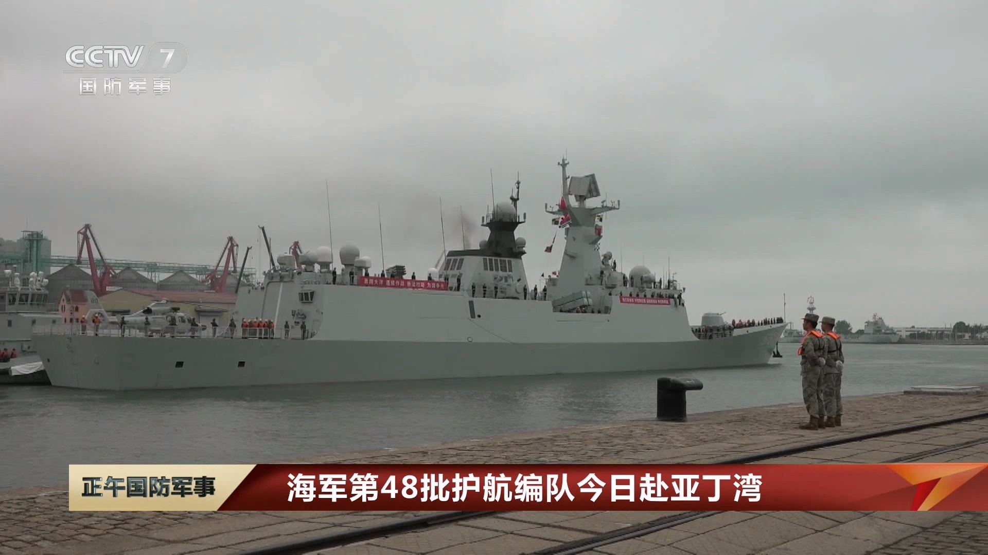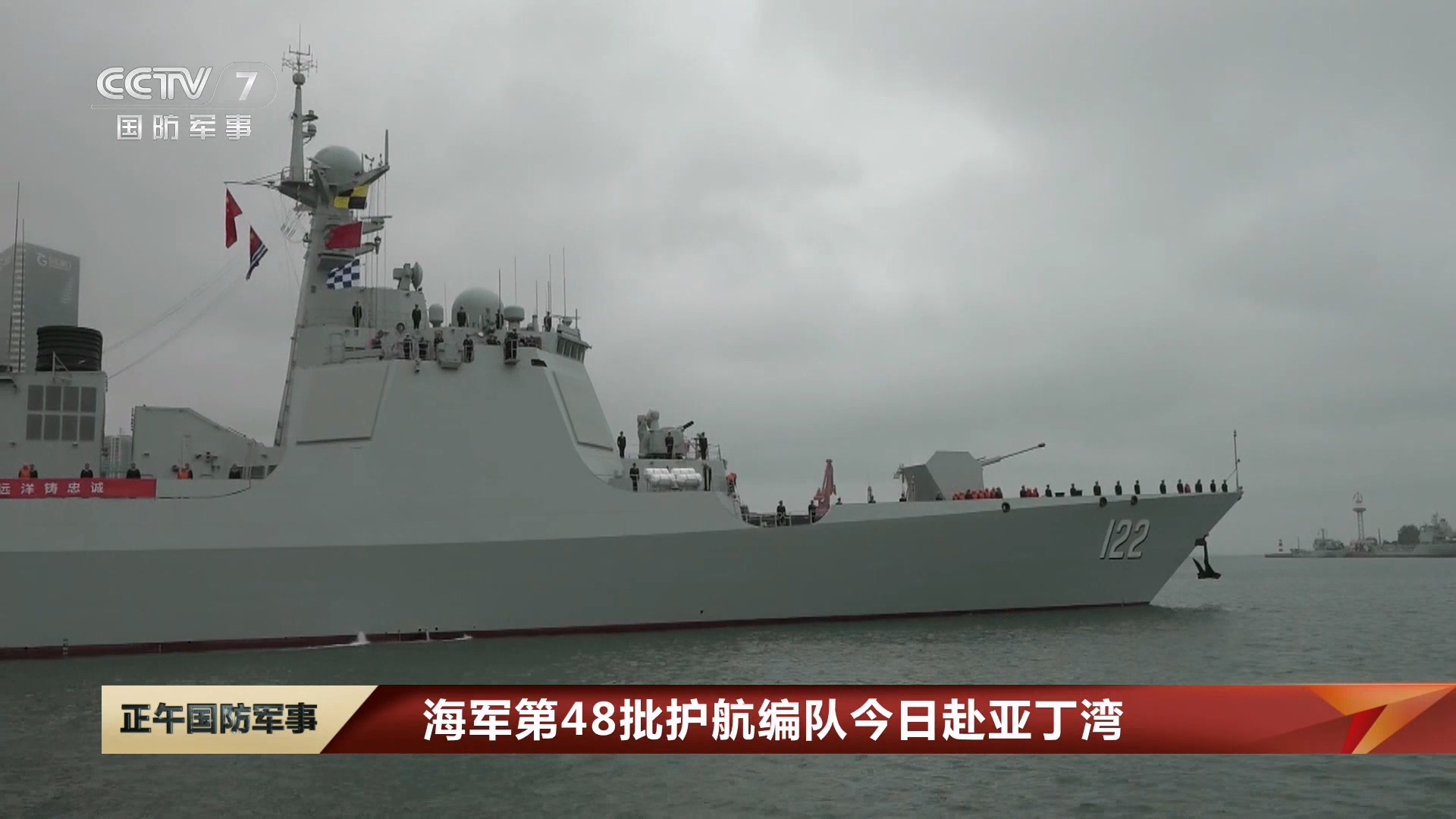 烽火问鼎计划 10月11日上午,由导弹驱逐舰唐山舰、导弹护卫舰大庆舰、远洋综合补给舰太湖舰组成的第48批护航编队从山东青岛某军港解缆起航,赴亚丁湾、索马里海域接替第47批护航编队执行护航任务。