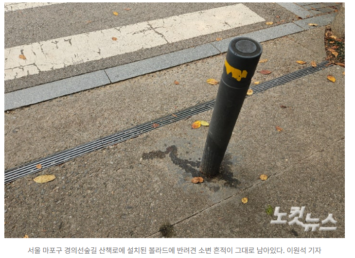 犬只的小便问题尤为突出。近来,大多数犬主在遛狗时携带拾便袋清理大便已成为常识,但小便却常常被放任不管。从养宠人士的立场来看,也确实有其理由。根据《动物保护法》第13条,动物所有者应在产生排泄物时立即清理,但对于小便,仅限定了集合住宅的内部公共空间、平台、椅子等人们可以躺卧或就坐的器具上方等部分特定场所。