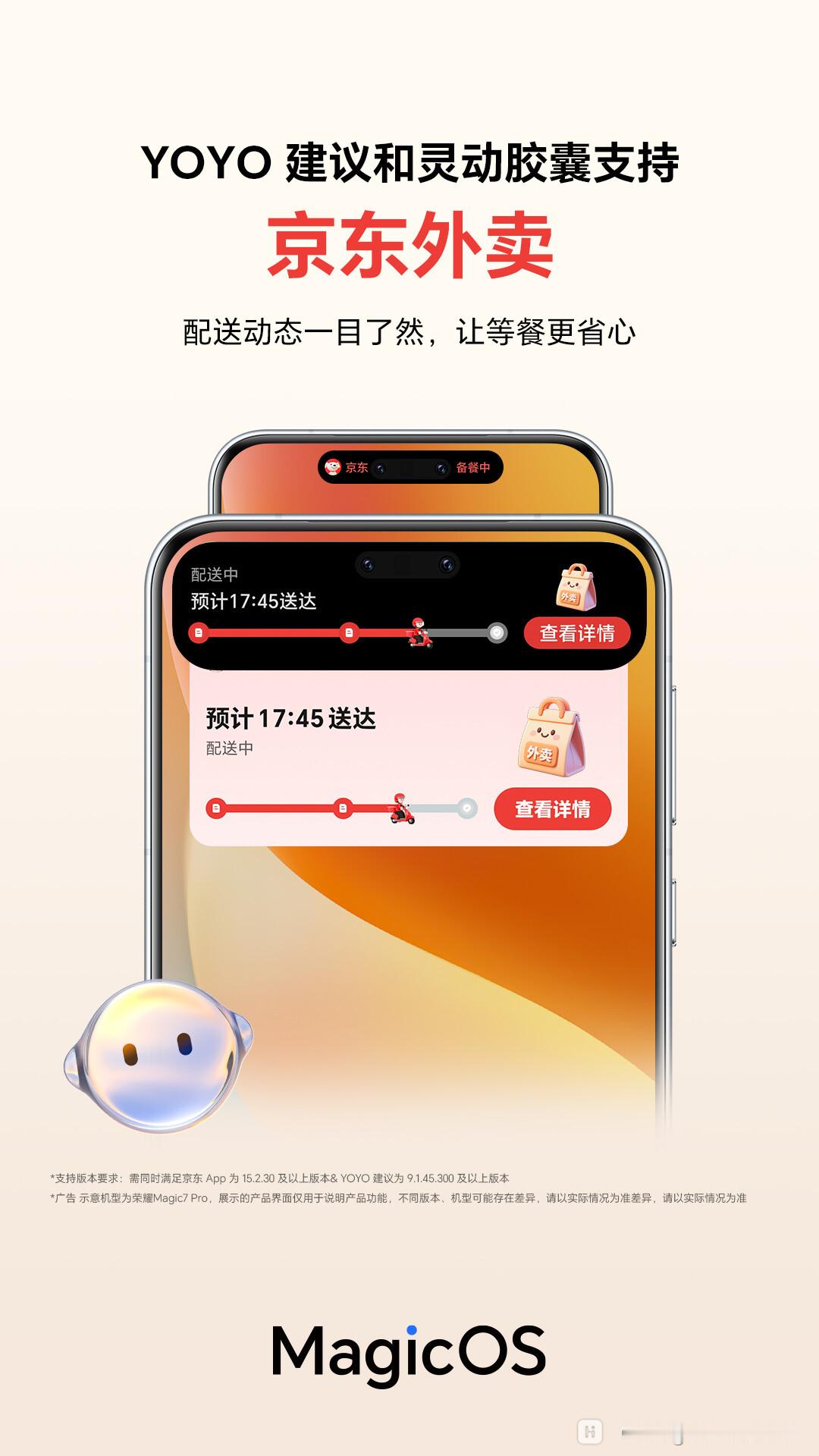 YoYo建议和灵动胶囊支持京东外卖,相关版本号见图,迟但到。高德地图步行上胶囊和