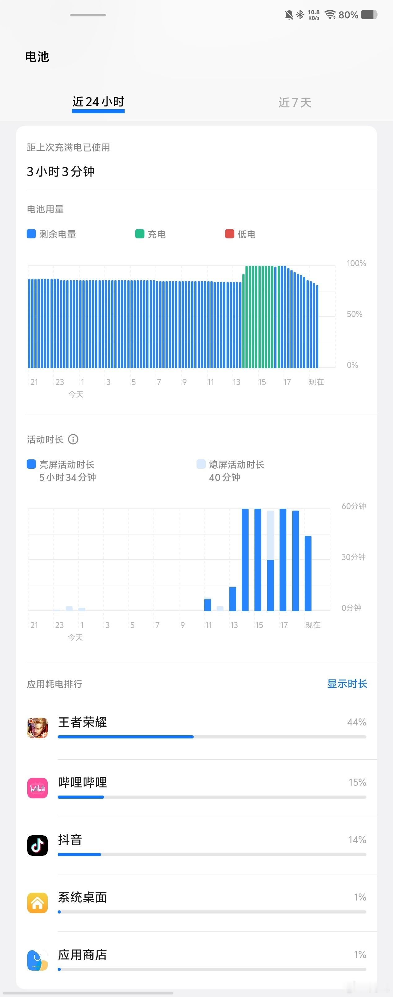 10000mAh大电池带来的续航也是惊人的,设定屏幕亮度为50%,实测一小时1080P在线视频+一小时短视频+一小时极致画质王者荣耀,亮屏三小时后,剩余电量仍然有80%,这么大的屏幕一样妥妥用一天。