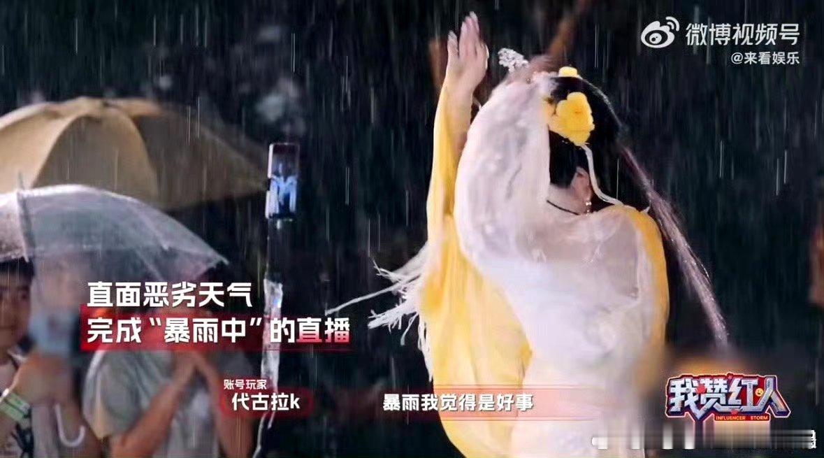 谁能想到一个竞综玩这么大啊主播直接雨中开整!代古拉k古装淋成落汤鸡还美到炸,毒角SHOW戴头套喊着跟大雨干