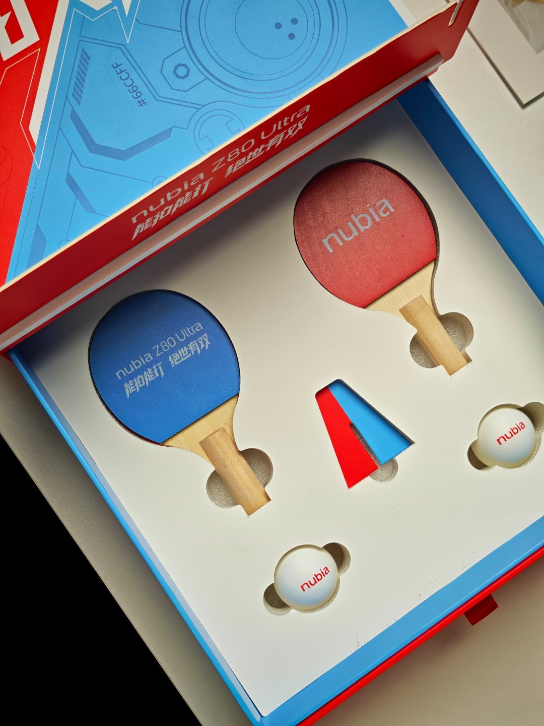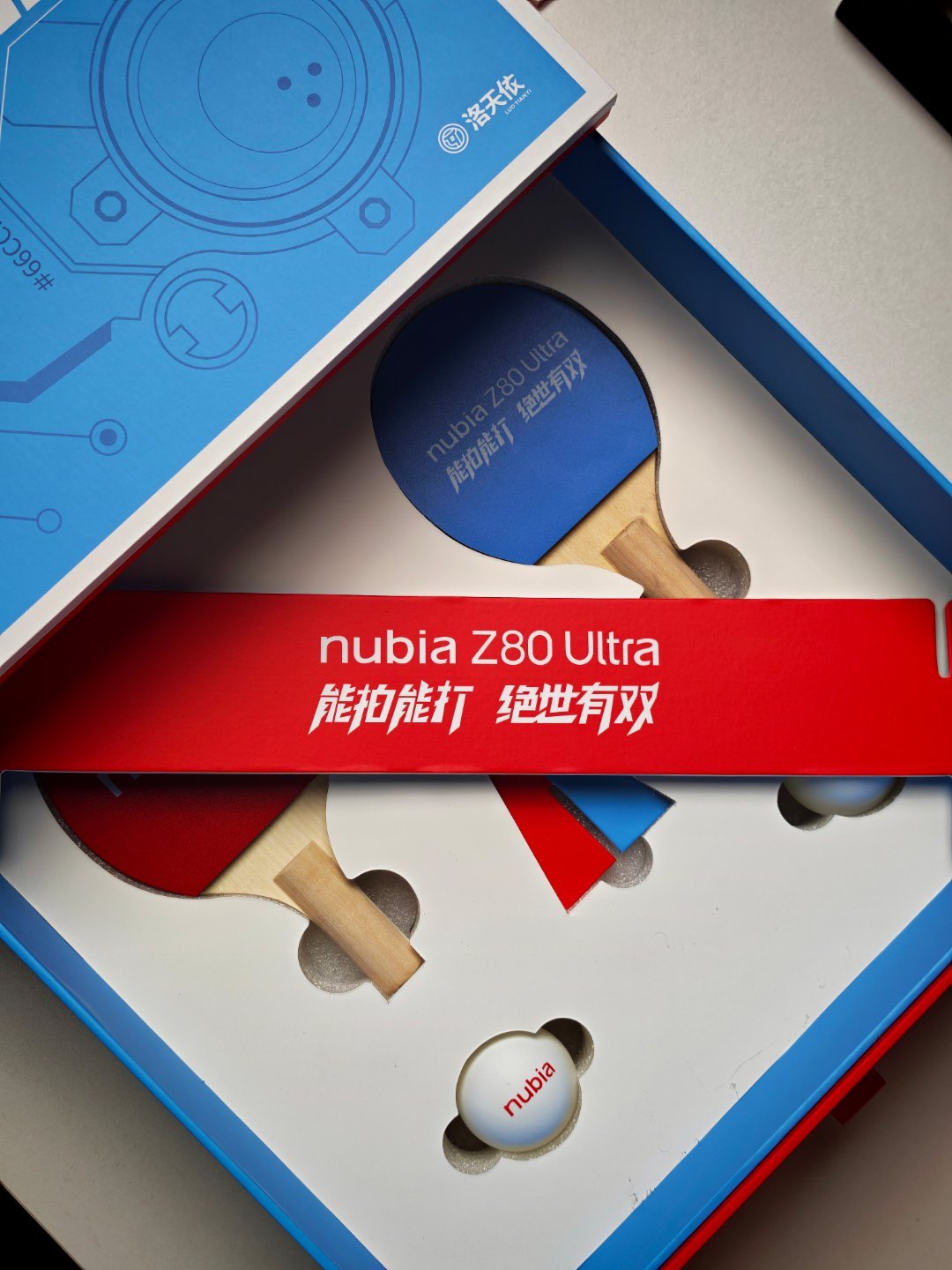 努比亚Z80 Ultra的邀请函,是一套乒乓球套装。这个盒子还可以变成球桌,全套齐活了。这一波是能拍能打,绝世有双。不仅是街拍手机,还可以是游戏手机,性能也拉满。