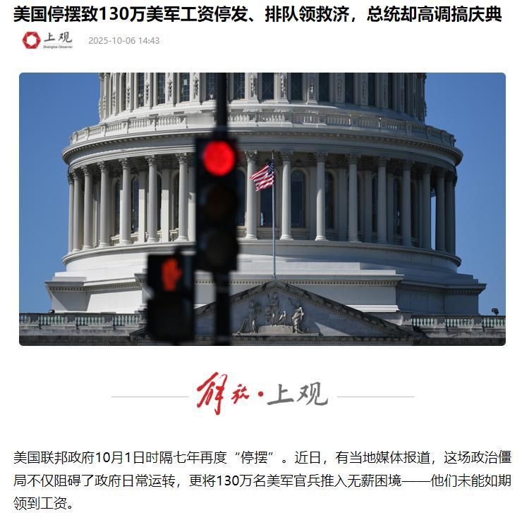 “贷款参军”成了美国最新的现状!这可不是编造的段子,而是血淋淋的现实。 据白宫新闻秘书莱维特公开证实,因为政府停摆,现在有130万美军士兵拿不到工资。这些平时扛着枪保家卫国的军人,如今却得靠基督教机构的救济过活,不少军人家属要排着长队领教堂的施舍。 更让人揪心的是,为了应付房租、水电费这些基本开销,有些拮据士兵只能去贷款,曾经光鲜的军旅生涯,如今竟和“欠债”绑在了一起。 其实早在10月1日政府停摆刚开始时,美国两党就说好了军人工资不能停——毕竟军队是国家的“安全基石”,要是军心乱了可不得了。 可计划赶不上变化,一部分极端MAGA士兵表态说就算没工资也愿意干活,甚至同意被派到民主党州执行任务。这番话让特朗普团队有了底气,直接把之前的约定抛到脑后,军人工资就这么停发了。 有意思的是,就在士兵们为生计发愁的时候,特朗普还忙着在弗吉尼亚州主持海军250周年庆典,说“演出必须继续”,可对工资的事却只字不提。 对大多数美军士兵来说,工资就是养家糊口的命根子,房租、孩子上学、柴米油盐哪样都离不开。工资一停,全家生活立刻陷入困境。基督教的食品银行里,最近来领免费面包、牛奶的军属比以前多了好几倍,常常供不应求。 海军官网甚至发了份“生存指南”,让士兵们去申请失业救济、找银行贷款,或者联系红十字会求助,可就是不说啥时候发工资。 更麻烦的是,要是想申请军方内部救助,还得提交储蓄余额、水电费单这些隐私材料,流程比外面贷款还复杂。 结果就是,金融机构里针对军人的小额贷款申请量猛增,不少人只能拆东墙补西墙,越借越多。而这种困境还连累了基地周边的商家,经济学家估计,当地要是长期停摆可能要损失10亿美元。 不过话说回来,“贷款参军”肯定长不了。军队要是长期欠薪,士兵们心里肯定不满,真要是闹出兵变,哪个政府都扛不住。虽说两党吵得不可开交,但在稳住军队这件事上还是有共识的。 可这次荒诞的闹剧,已经把美国政治博弈的副作用暴露无遗——为了党争,连保家卫国的军人都能被“晾”在一边。要知道,政府每停摆一周,美国经济就要损失150亿美元,不光是军人,两百多万政府雇员、依赖补贴的农民,甚至坐飞机的旅客都受影响。 这种“自己人坑自己人”的场景,也难怪外界会看到这个军事强国背后的窘迫。