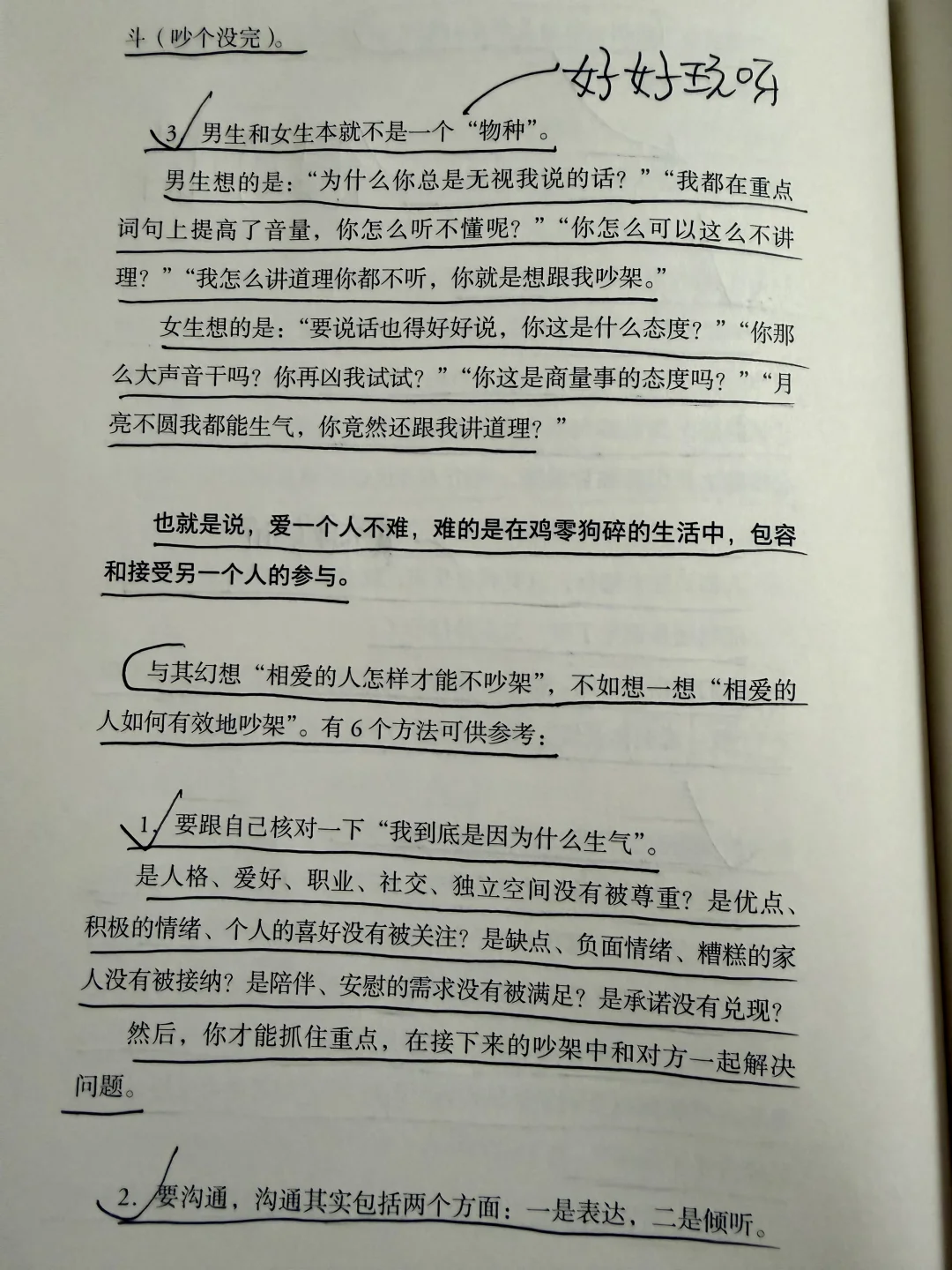 而不是哼唧、翻白眼、甩脸子。