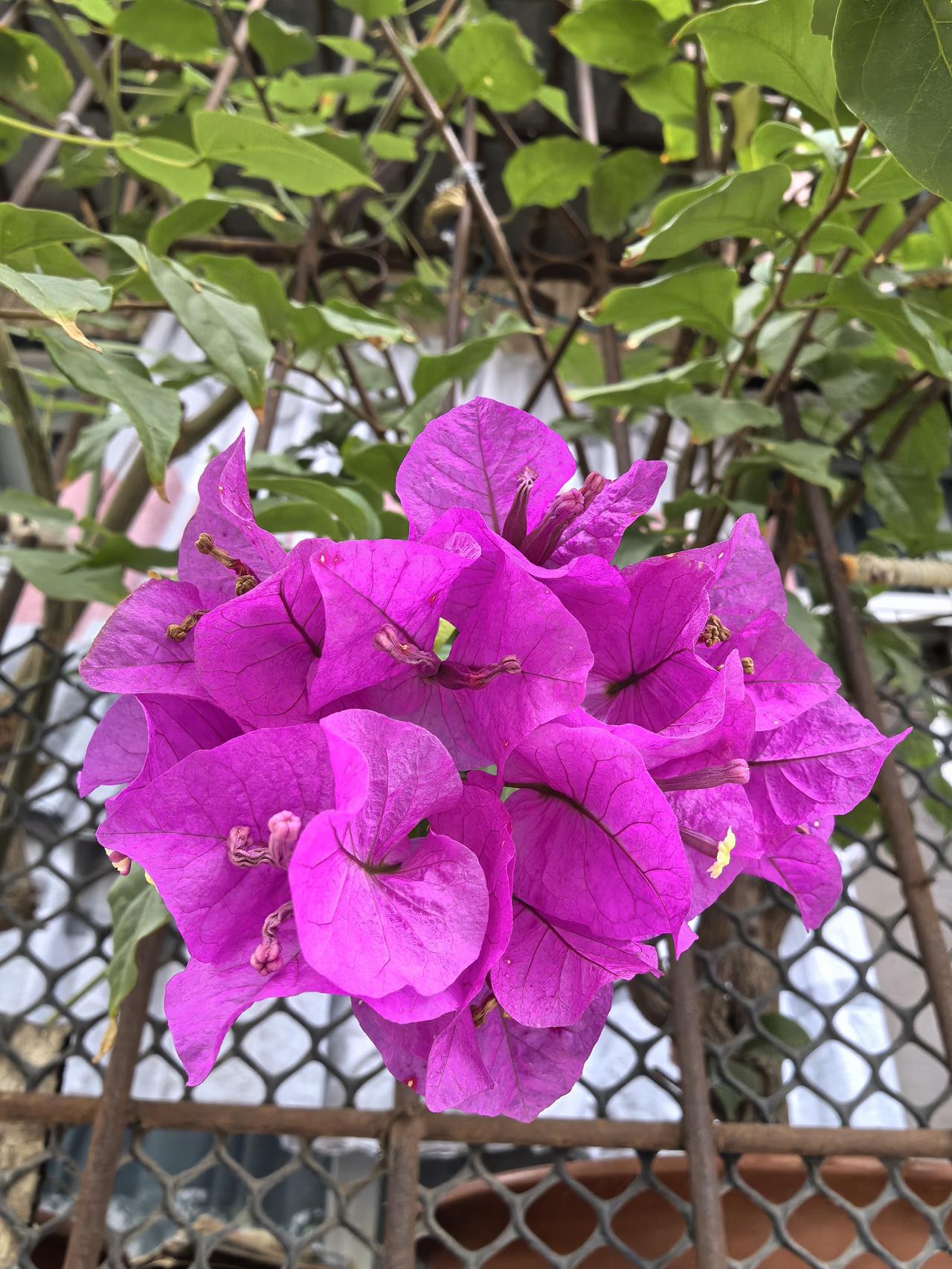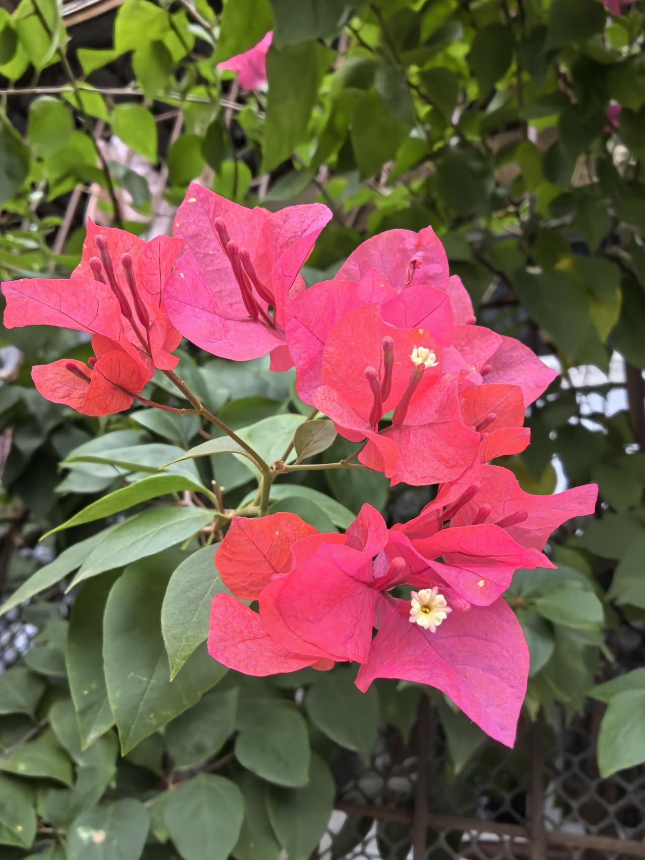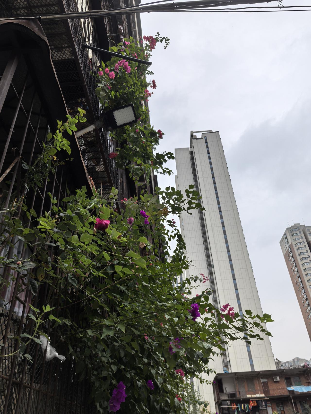 三角梅,斗芬芳 来到一个老小区, 等朋友, 抬头就看到探出阳台的三角梅, 三色