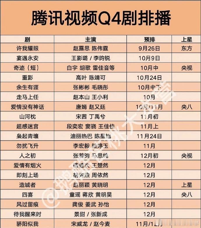 四季度各平台新剧排播来了!期待看哪一部?