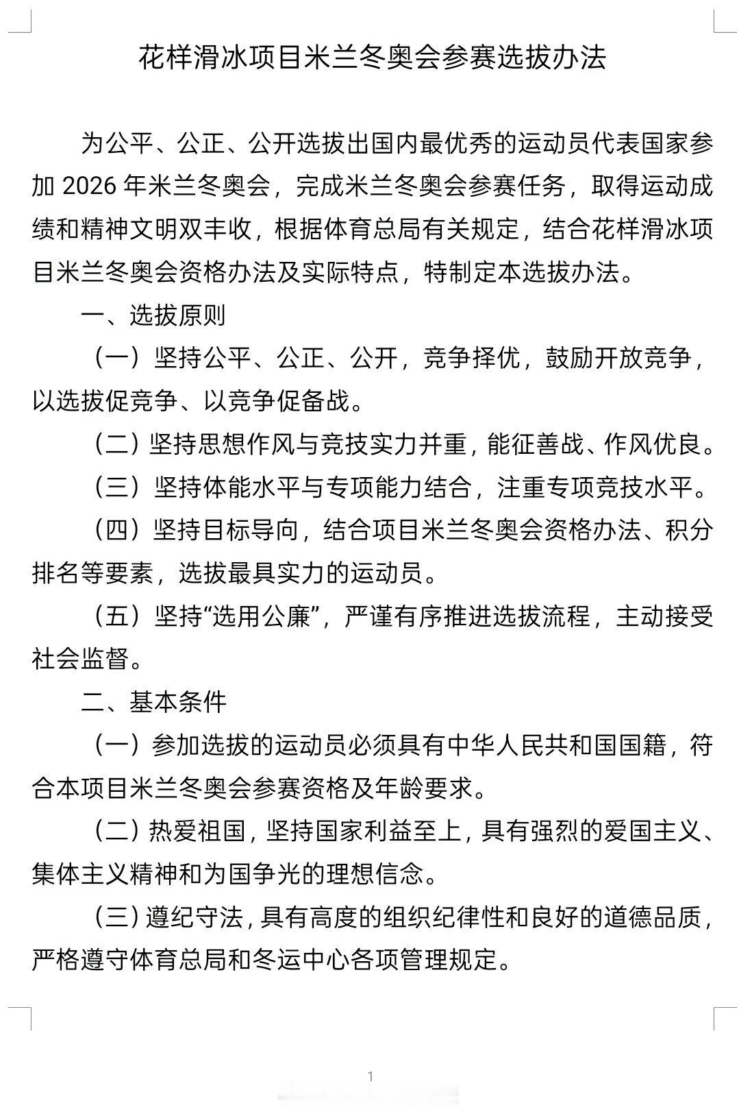 米兰冬奥会花滑选拔办法公示米兰冬奥会花样滑冰选拔方案已出,简单明了,中国杯成
