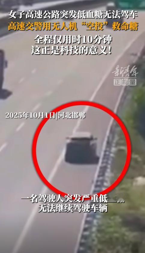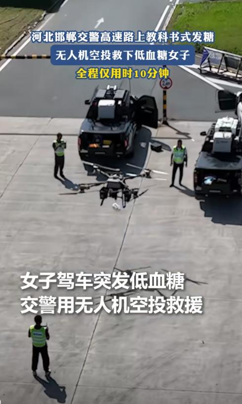 这就是科技的意义!10月1日,河北一女子在高速开车,突然将车停在应急车道,交警发现异常后,得知女子突发低血糖,果断用无人机空投救援,快速锁定车辆,用绳索投下糖果和巧克力,女子取得糖果后缓解不适,回车等待救援,随后交警赶到现场,帮女子把车开下高速! 10月1日,河北高速衡水段,监控室里的王警官突然发现异常:一辆白色轿车停在应急车道上,驾驶员趴在方向盘上一动不动,车后也没放置三角警示牌,这种情况最让人揪心,要么是车辆故障,要么是驾驶员身体出了问题。 王警官立即调取监控细看,发现驾驶员似乎在颤抖,情况紧急可巡逻车赶到现场至少需要15分钟,高速路上车流量大,每一秒都可能发生危险。 派无人机先去看看,指挥中心当机立断,张警官迅速启动无人机系统,银灰色的无人机腾空而起,保持50米高度向目标车辆飞去,透过高清摄像头,画面传回指挥中心,一位女士脸色苍白,额头冒汗,明显是身体不适。 您好,请问您是否需要帮助,无人机的喊话功能传出张警官的声音。 车窗缓缓摇下一位女士虚弱地回应:低血糖犯了头晕得厉害身上没带吃的东西...... 原来司机李女士(化名)从石家庄出发去沧州探亲,本以为两小时的路程很快就到,出门时只带了瓶矿泉水,谁知道开到离衡水服务区还有5公里的地方,突然感觉天旋地转手脚发软,连油门都控制不住。 李女士凭着最后的意识把车停到应急车道,拉起手刹打开双闪,然后整个人就瘫在了座位上,想打电话求助可手抖得连手机屏幕都点不准,看着旁边呼啸而过的车辆,心里既害怕又绝望。 得知情况后指挥中心立即行动,巡逻民警车上常备的应急物资派上了用场,两袋水果糖、一块黑巧克力,用绳子绑好挂在无人机底部。 无人机载着救命糖果再次起飞,这次的任务是精准投放,张警官小心操控着,让无人机悬停在李女士车窗上方约1米的位置。 您伸手接一下注意安全别碰到螺旋桨,红色的小袋子缓缓降下,李女士用尽全身力气伸手接住,撕开包装的那一刻,她的手还在不停颤抖,两颗糖果含进嘴里,又咬了一口巧克力,甜味在口腔里化开,血糖慢慢回升,头晕的感觉逐渐消退。 五分钟后李女士的状态明显好转,对着无人机挥手示意,又过了五分钟巡逻民警赶到现场。 民警先在车后150米处放置了三角警示牌,确保安全后询问李女士的情况,得知她还是没力气开车,民警二话不说:您坐到副驾驶,车子由我们来开,先送您到服务区休息。 到了服务区民警不仅帮李女士停好车,还陪着她去餐厅买了热粥和鸡蛋,一直等到她完全恢复才离开,临走时还留下了联系方式,叮嘱她路上有任何问题随时联系。 这件事被发布到了网络上,很快就引发网友们的热议,有人感叹科技改变生活:以前高速救援只能干等,现在无人机几分钟就到,太给力了,也有人提醒:开长途一定要备点糖果饼干,关键时刻能保命。 其实高速公路上的应急救援一直是个难题,路况复杂、车流量大,救援车辆到达需要时间,而无人机的加入让救援效率大大提升,不仅速度快还能避免二次事故的风险。 据了解,河北高速交警部门从去年开始试点无人机巡逻系统,配备了多架专业救援无人机,这些无人机续航时间可达30分钟,最大飞行半径5公里,能够携带小型应急物资,在关键时刻发挥大作用。 交警部门提醒驾驶员在长途出行前应该做好充分准备,保证充足睡眠、携带必要的食物和水、常备应急药品,特别是有低血糖、高血压等慢性病的驾驶员,更要注意随身携带相关药物和食品。 遇到突发情况时要保持冷静,及时开启双闪灯,尽可能将车辆停靠在应急车道,并在车后规定距离放置警示标志,如果身体不适无法自行处理,要立即拨打报警电话求助。 这次空投糖果的暖心救援,让人们看到了科技与人文关怀的完美结合,高速交警不仅有先进的装备,更有为民服务的初心,正是这种责任心加上科技助力,才让一次可能发生危险的突发状况,变成了一个温暖人心的故事。 麻烦看官老爷们右上角点击一下“关注”,既方便您进行讨论和分享,又能给您带来不一样的参与感,感谢您的支持!