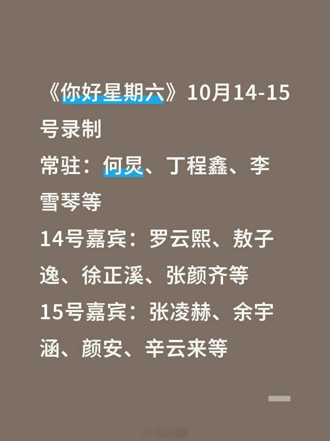 《你好星期六》10月14-15号录制