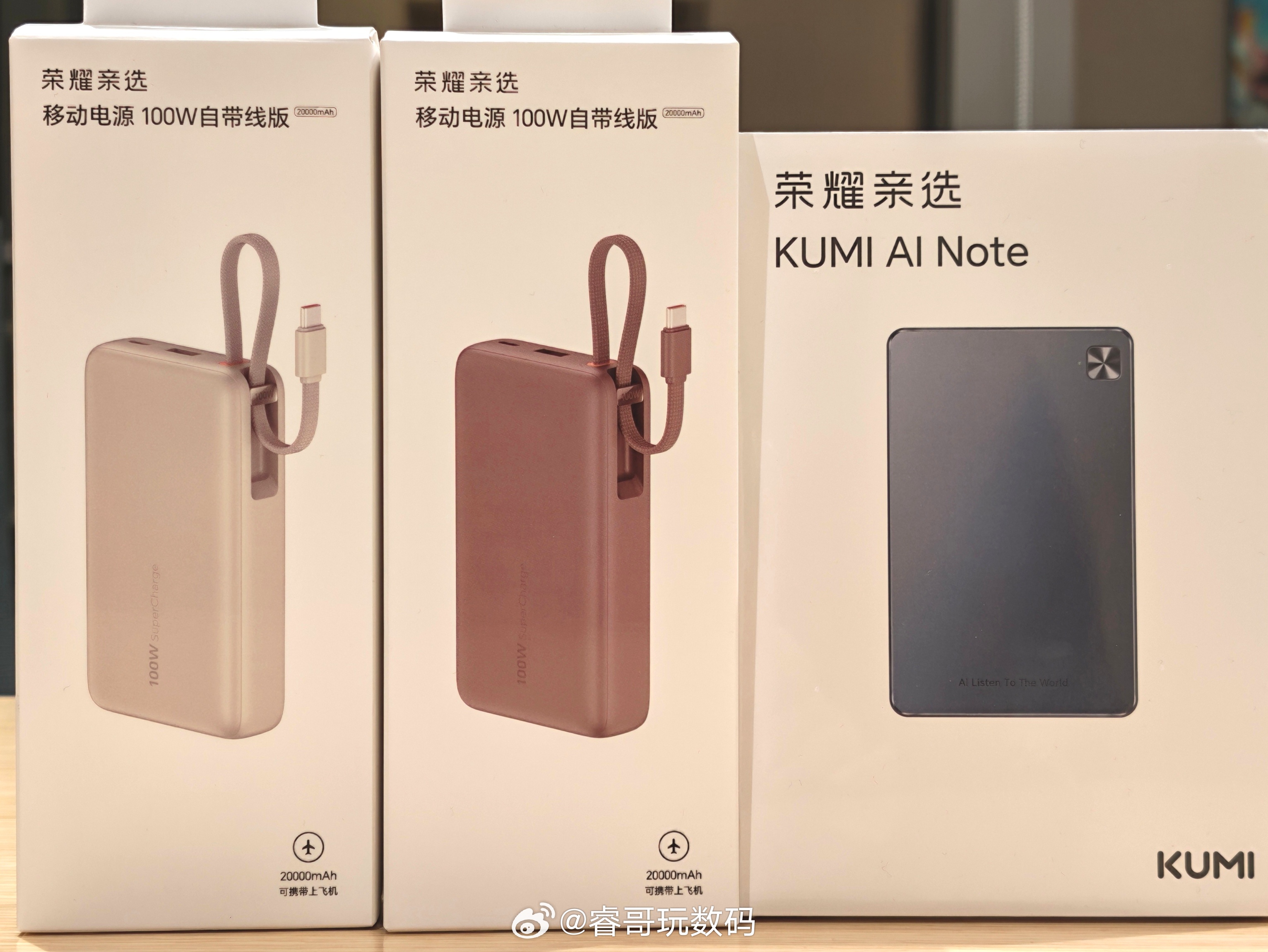 荣耀亲选100W 20000mAh自带线移动电源即将上市,自带高强度尼龙编织USB-C线,支持华为/荣耀/华为智选/苹果手机平板笔记本至高100W有线超级快充,支持SCP、PD3.0、FCP、QC3.0多种主流协议,额定容量12500mAh,3C认证可上飞机,价格有惊喜。