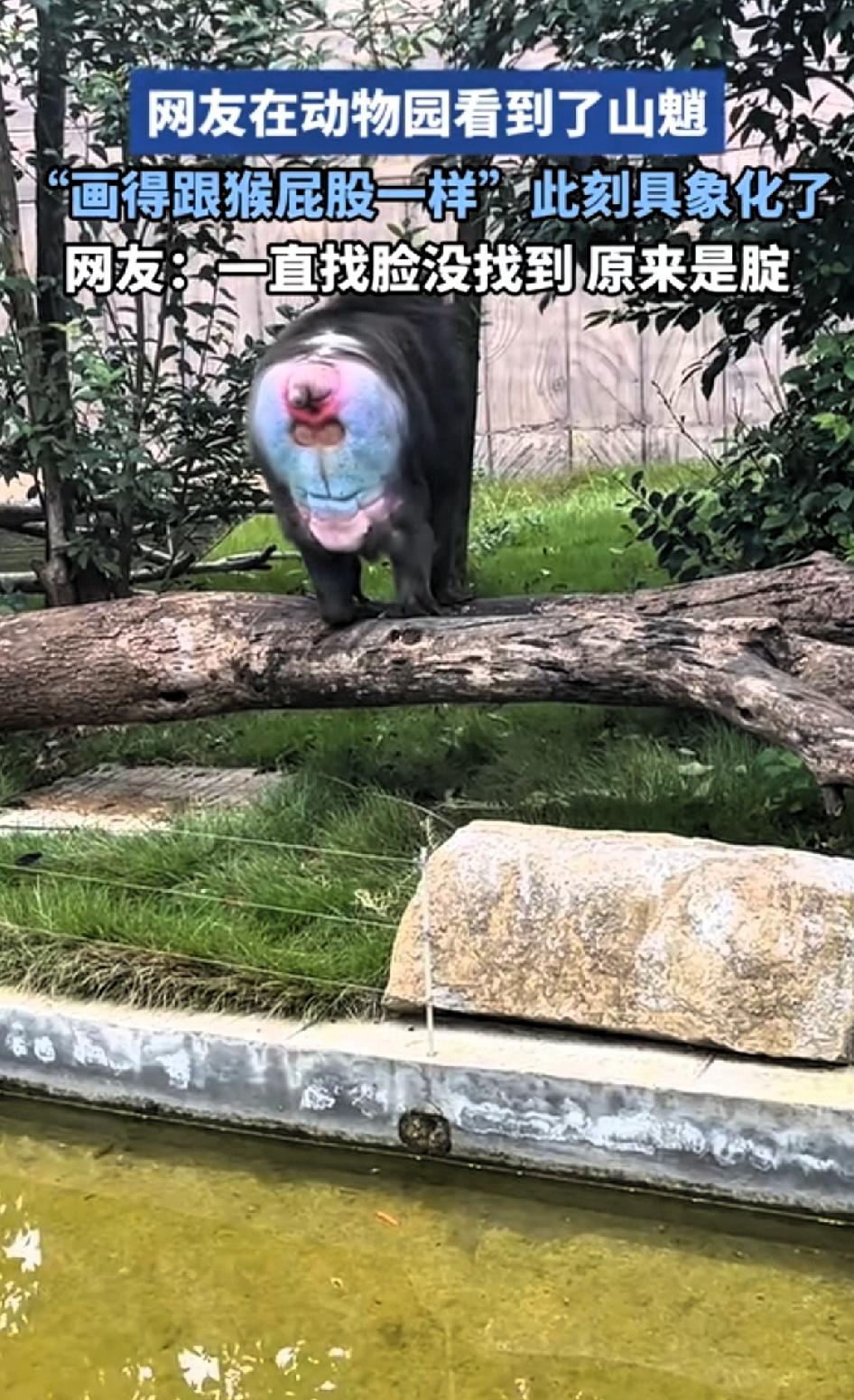 网友在动物园看到山魈“画的跟猴屁股一样”此刻具象化咯!网友:一直找脸没找到 原来是腚。 山魈的基本特征:学名Mandrillus sphinx,是世界上最大的猴科动物,雄性体重可达30-45公斤(雌性约一半),面部有鲜艳的红色鼻梁和蓝色纵纹,形似鬼脸,故得名“山中之鬼”。这颜色看着确实怪异,居然呈蓝色、粉色、和鲜红色,不得不说大自然孕育出来的神奇物种! 生态习性:分布于非洲中西部(如刚果、加蓬),群居性强,社群规模可达600-1300只;杂食性(以植物为主,兼食小型动物),奔跑速度达每小时40公里,成年雄性性格凶猛但较少主动攻击人类。 看半天才看出来是屁股!记得去年才去动物园,没看到颜色这么鲜艳的山魈,真是第一次见到这奇怪的画面。看这个颜色和体型,应该是正处于壮年的山魈。仔细看整个屁股很像一张猴子脸。