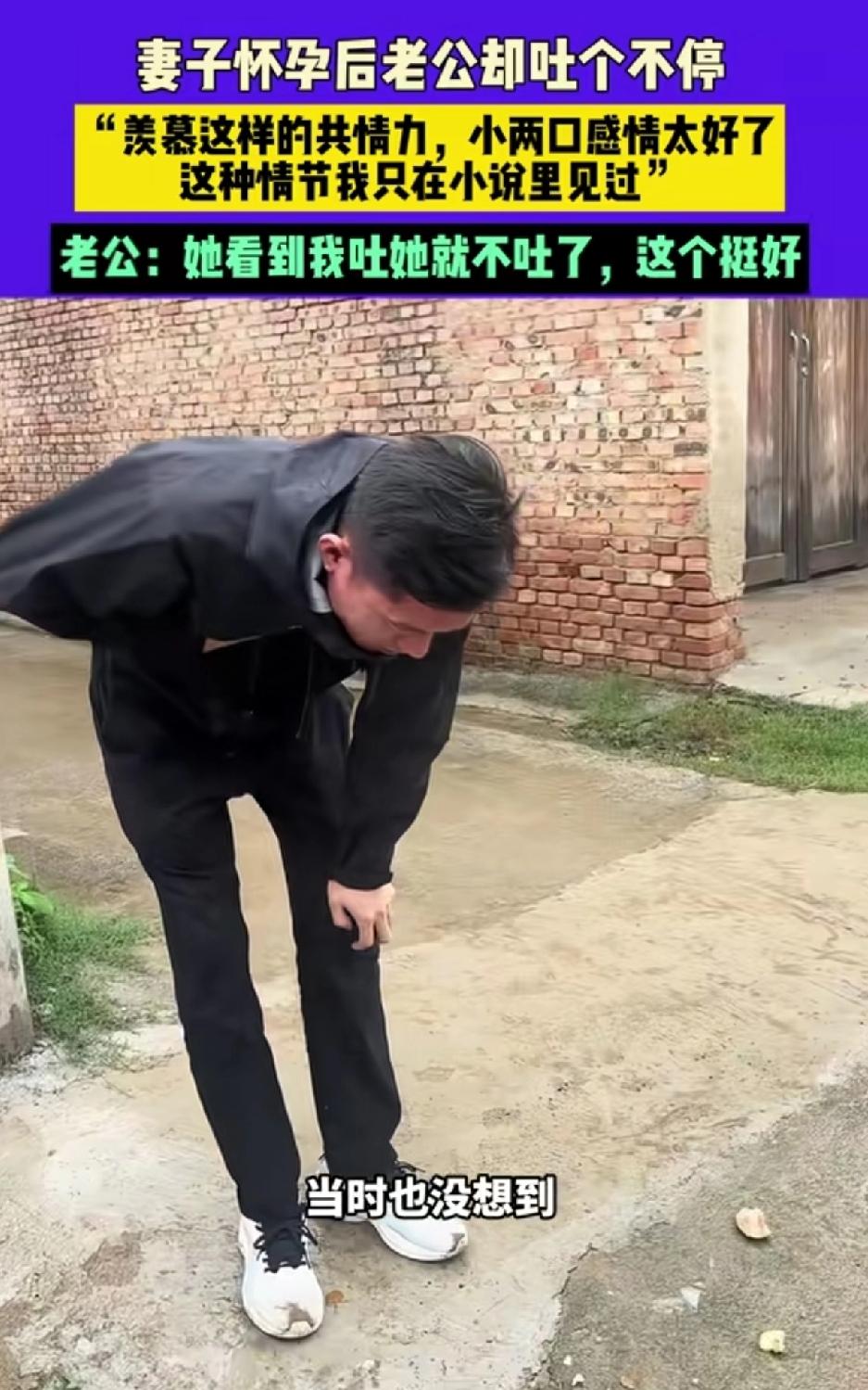 妻子怀孕后老公吐个不停“羡慕这样的共情力”夫妻俩感情太好了!这画面太有爱了!“我吐了媳妇就不吐了”,这是什么神仙老公啊!这种共情力太让人羡慕,感觉他们的感情像蜜里调油。 现实里好多夫妻,妻子怀孕时老公就像个“甩手掌柜”。而这对夫妻,老公能感同身受,把妻子的苦都往自己身上揽。都说夫妻是共同体,有这样同甘共苦的态度,以后日子肯定甜甜蜜蜜。就冲这共情,小两口的感情稳稳当当。 想当年我怀孕吐的要死要活,孩子爸在餐桌上笑着看着我吐,边笑边大口吃饭,到现在我还记得他那副贱样!孕后期吃多一点,还问你又饿了?不是刚刚才吃过?想到那个贱男都来气! 这种妻子怀孕老公有孕吐的男人只听说过,还吐的那么厉害[笑哭]看来是感情太好了,光想替妻子受苦。 还是好好养身体,等孩子生下来再替妻子好好分担吧!现在吐也没用!孕期感悟 孕期食欲