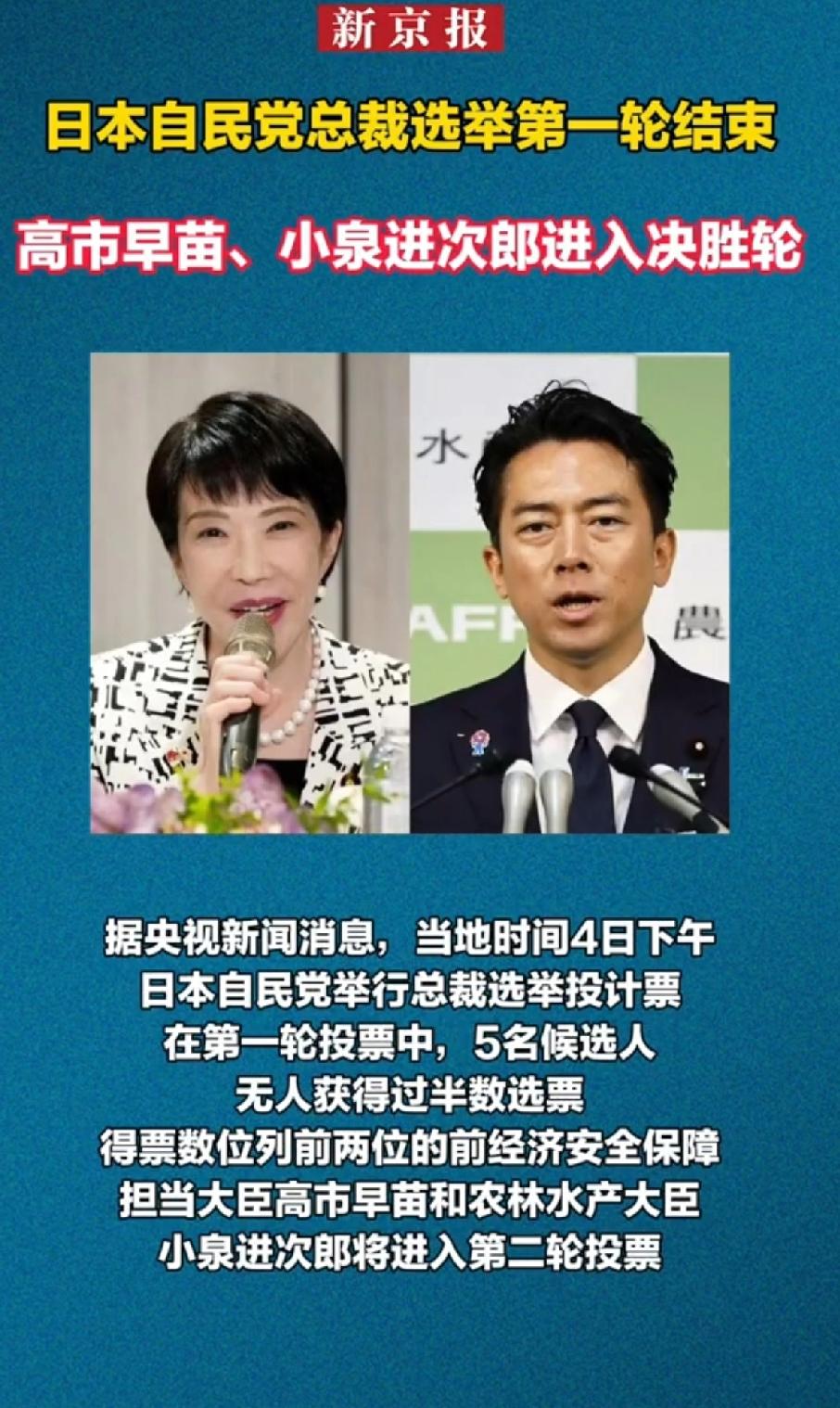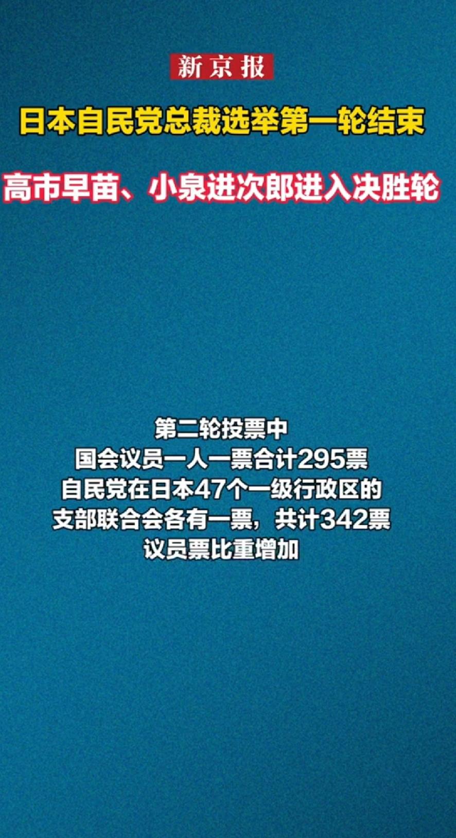 高市早苗当选日本自民党总裁,预计将成为日本历史上第一位女首相。高市早苗当选日本自民党第29任总裁,大概率会成为新一任日本首相,将是日本历史上首位女性首相。 在第二轮投票中,国会议员一人一票共295票,自民党47个一级行政区支部联合会各一票,共342票,高市早苗拿到185票。她当选自民党历史上首位女性总裁,这一结果在日本政坛无疑是个大事件。不过,日本未来在她的领导下会走向何方,是延续旧有路线,还是有新的变化,值得持续关注。 这个高市早苗当选日本新首相,就是她不断强调台湾有事,就是日本有事那个极度反华的日本政客。 对于国人来说;谁上来都一样,改变不了这个国家的狼子野心!对于日本只能各方面强过它,它才会安分守己。要不然亡华之心不死,才是心腹大患。我们只能做好防范,强大自己!