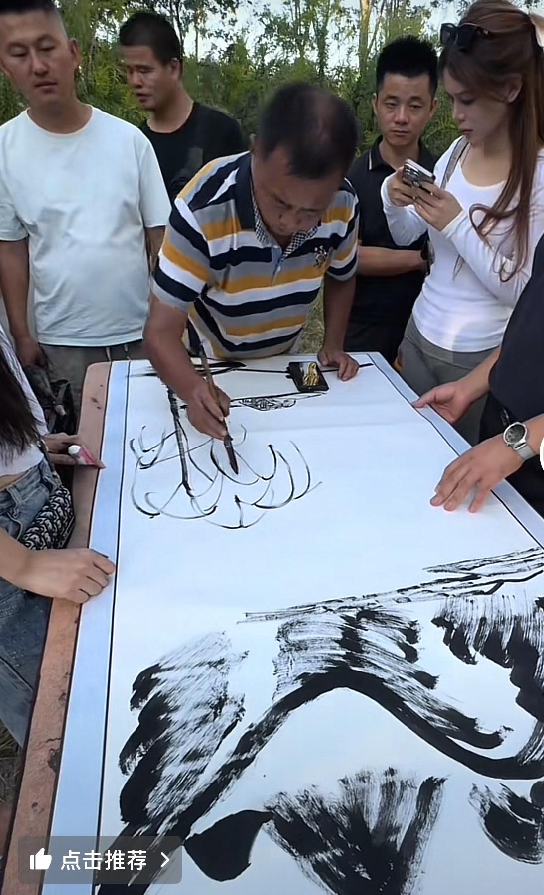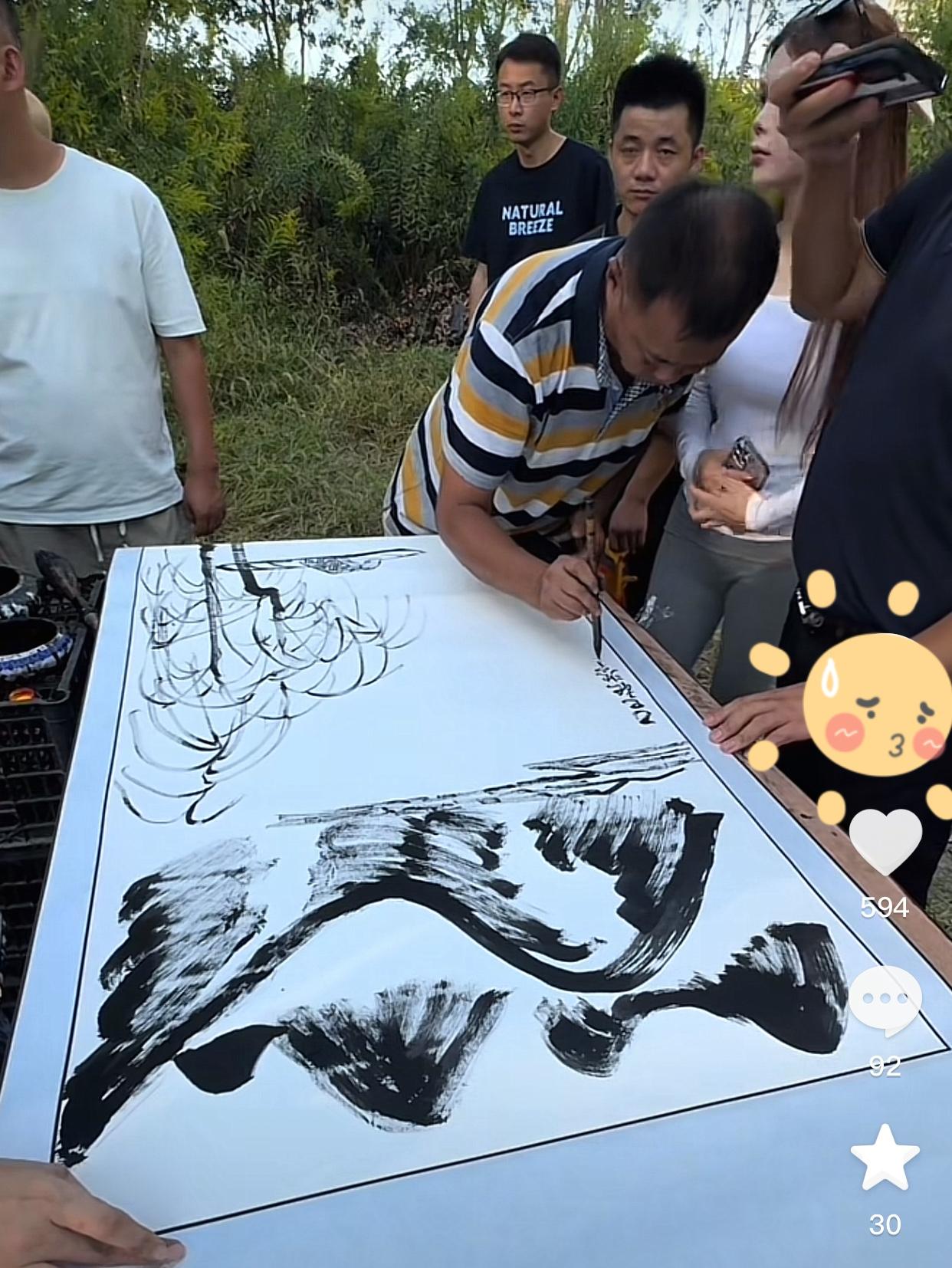 沈巍最近画的山水画,寥寥数笔,却把山水画得如此大气磅礴[赞] 这一幅画比较大,铺满了整个桌子,但是沈巍画它不过数分钟,大笔一挥,墨水随着笔尖转动在纸上留下了美丽的线条,粗细有致,轻重缓急,构成了一幅优美的画卷。[我想静静]