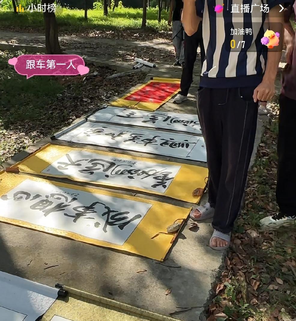 有许多沈巍先生书法的批发商将一大片大师的书法铺开了晒太阳! 前段时间有人将沈巍大师的字画炒作到几十万,导致一大堆粉丝认为其字画奇货可居,人生打翻身仗的机会来了!许多人不惜斥巨资批发了一堆大师的字画,准备大捞一笔。然而市场风向说变就变,等他们手上的筹码买的差不多了,却发现接盘侠没有了! 其实早期几个老沈身边的小网红通过批发大师的字画应该赚了点钱。比如本来要和沈大师司机谈恋爱的麦子,手上金镯子都戴上了。现在的金价大家应该很清楚,说明她还真有可能捞了一笔! 只不过这种行情持续性很短,一方面这种行情完全是情绪拉起来的,价格不稳定。另一方面老沈估计自己也不确定自己能火多久,一有机会就大写特写猛写。他也是很清醒的,每次别人求画求字他都把丑话说在前头,现在急吼吼求他字画,别以后风头过了不值钱了,别回头骂他!