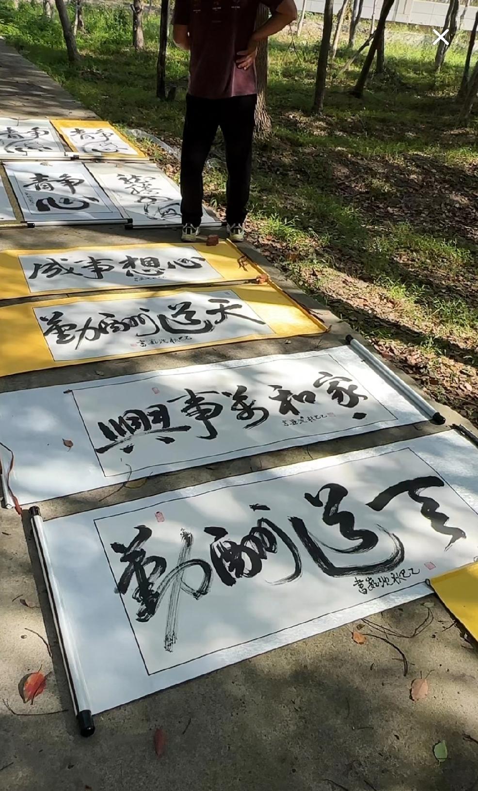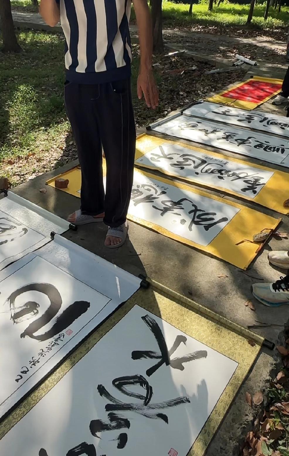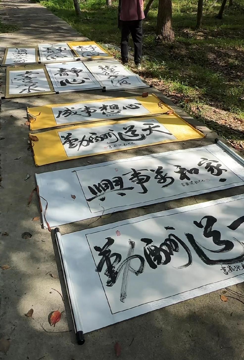 有许多沈巍先生书法的批发商将一大片大师的书法铺开了晒太阳! 前段时间有人将